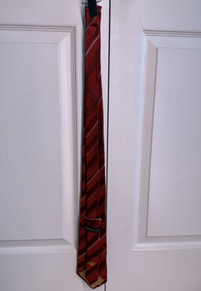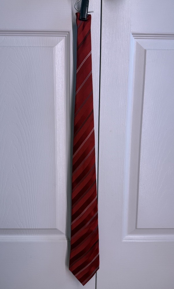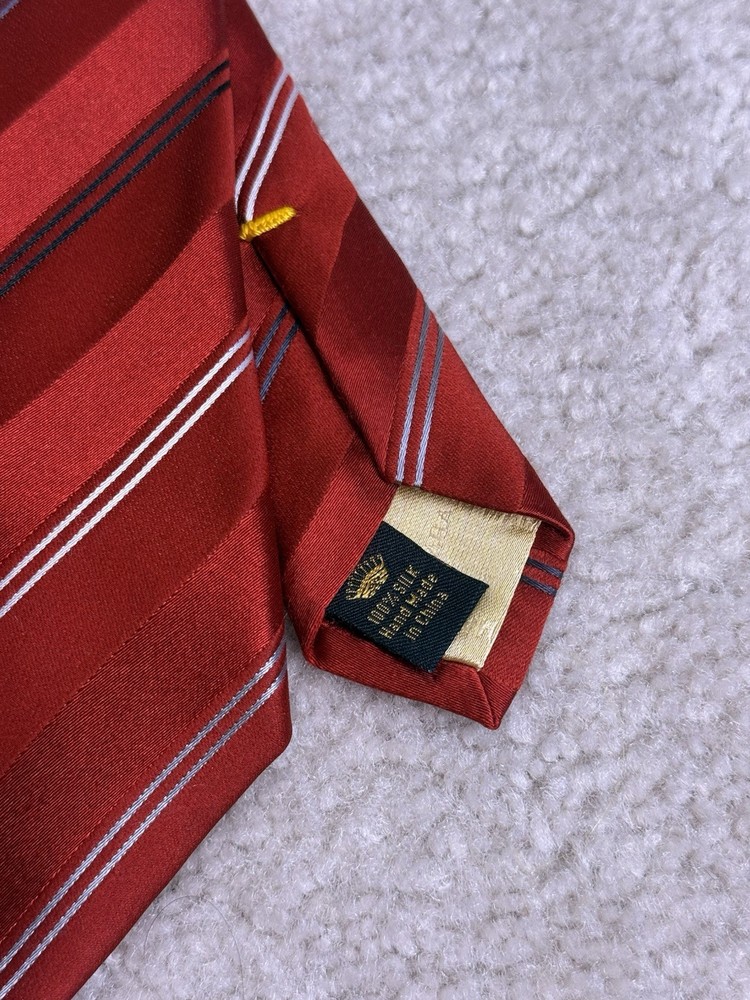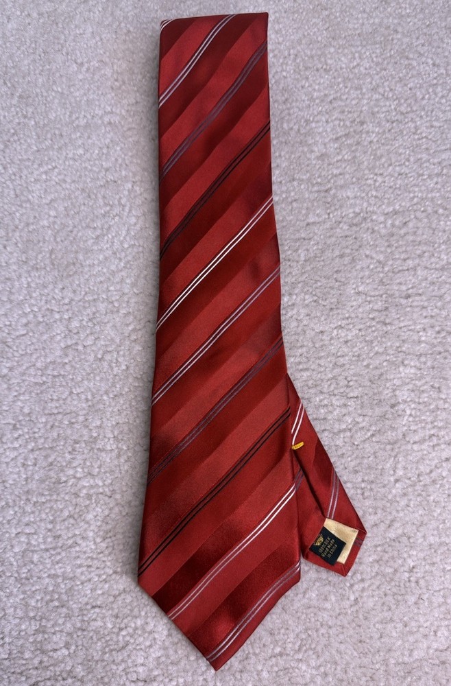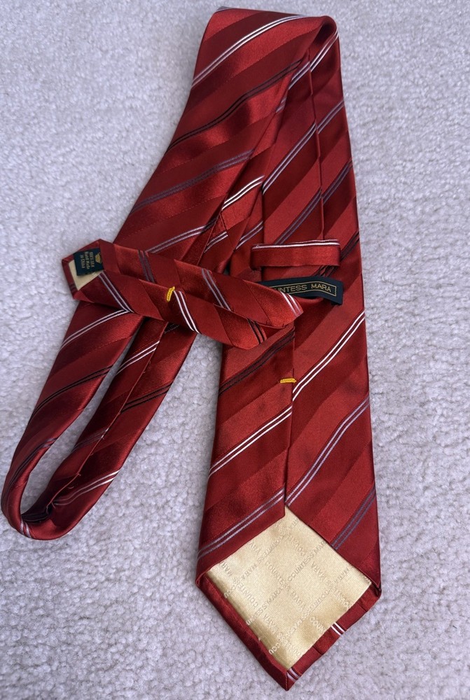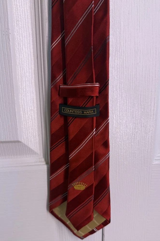 Countess Mara Red Silk Tie with Silver Black Stripes for Men