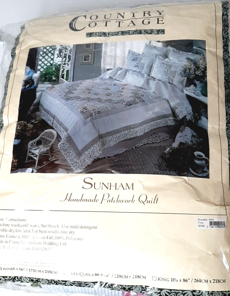 Country Cottage Sunham Handmade Patchwork Quilt Hyacinth Pattern Twin 68" x 86" Brand new