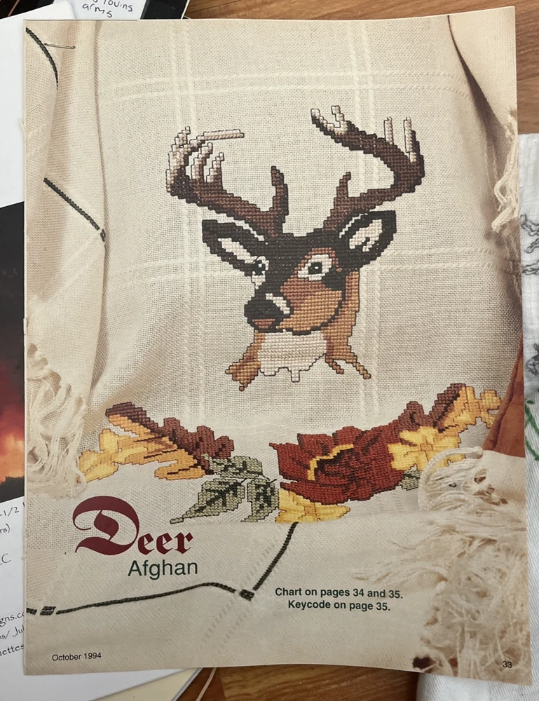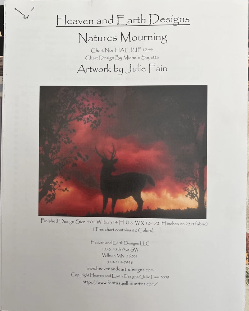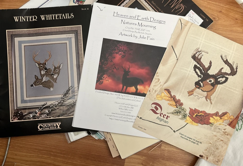 Country Cross Stitch Pattern Needlework Set of 3 Deer Trio 1) Heaven and Earth Designs-Natures Mourning Chart No HAEJUF 1244 Artwork by Julie Fainb 2009 (24 pages) 2) Winter Whitetails Country Cross Stitch Book 42 1987 Leaflet 3) Magazine Deer Afghan1994 2 pages
