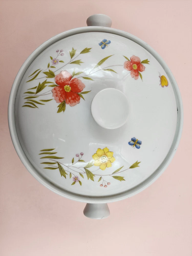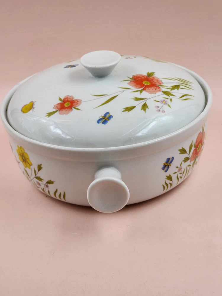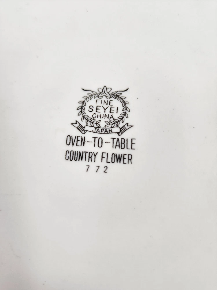 Country Flower Fine Seyei China 1 Qt Covered Casserole Oven to Table Cookware Good pre-owned oven to table 1 Qt casserole dish with lid. Use marks. No chips, cracks or breaks noted. See photos for condition detail. Beautiful addition to your table. Approximate measurements: Handle to handle: 9" Diameter: 7½" Height: 4"