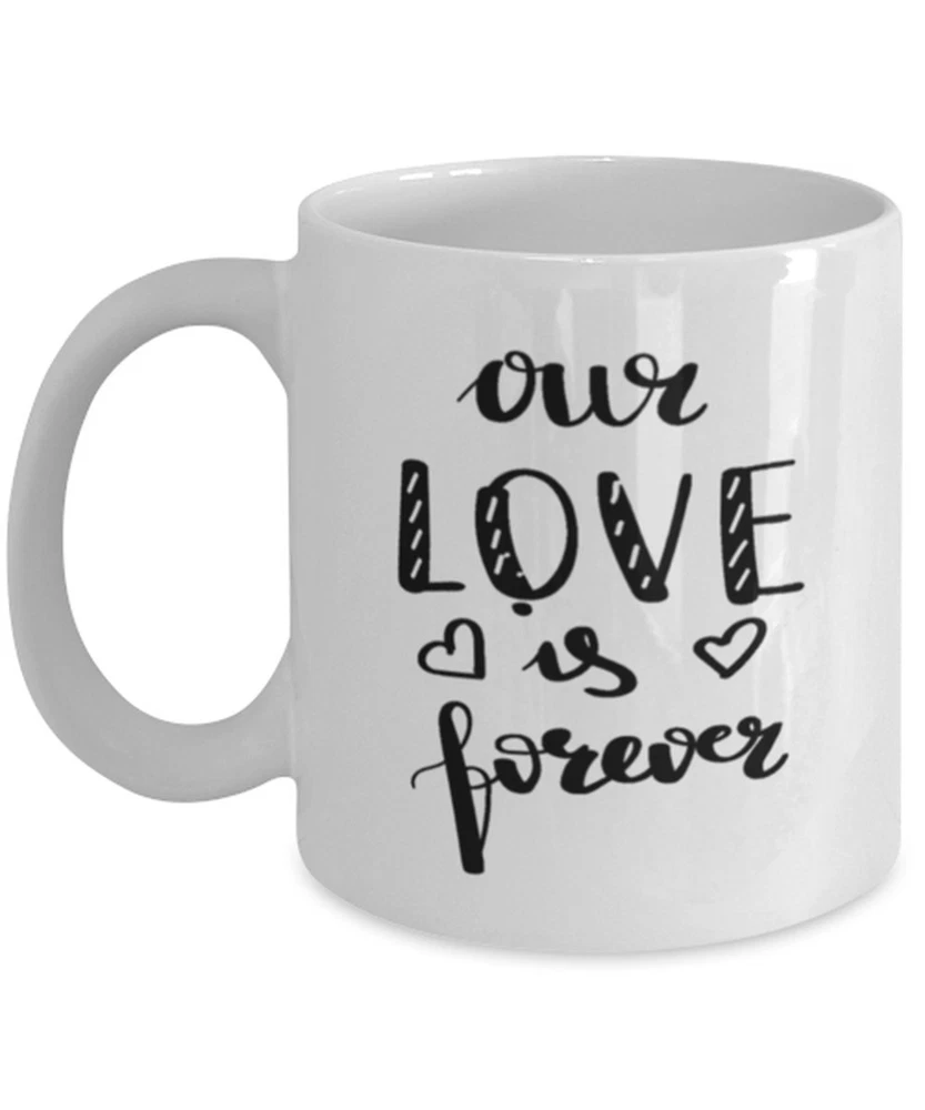 Couples Valentines Day Mug Our Love Is Forever Gift For Wife Girlfriend Husband Product Details.. This high quality 11oz. ceramic white mug has a premium hard coat that provides crisp and vibrant color reproduction sure to last for years. Perfect for all hot & cold beverages. The highest quality printing possible is used. It will never fade no matter how many times you wash it. Material: 100% Ceramic. Print both sides. Dishwasher and Microwave Safe. High Gloss + Premium White Finish. Printed in the U.S.A. Personalized & Custom. We support personalized and custom mug to add custom, when placing an order, you can add notes to the "order note" in shipping address section. Also you can contact us directly via message. Shipping Info. Ready to ship in 1 to 2 business days, All products are made-to-order and proudly printed in the United States. Shipped by USPS and DHL, You will receive your order in 5-7 days. Replace & Refund. All products are defective during shipping broken, chipped will be replaced free of charge. You are not satisfied with the product, we will refund 100% money to you. If any other issues arise, please do not hesitate to message, we would be more than happy to assist you.