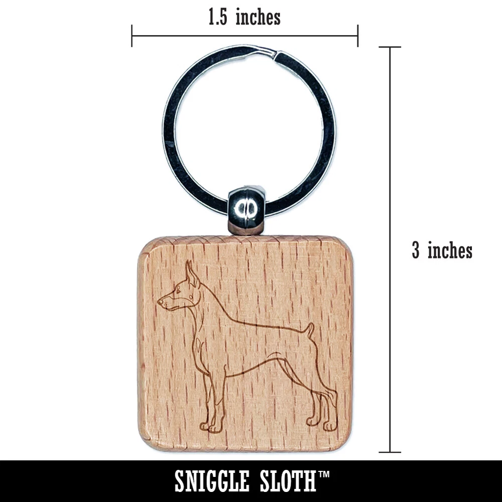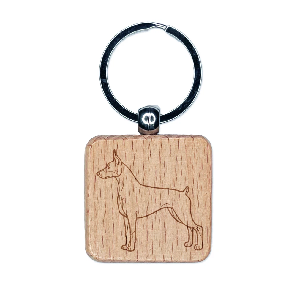Courageous Doberman Pinscher Pet Dog Engraved Wood Square Keychain Tag Charm