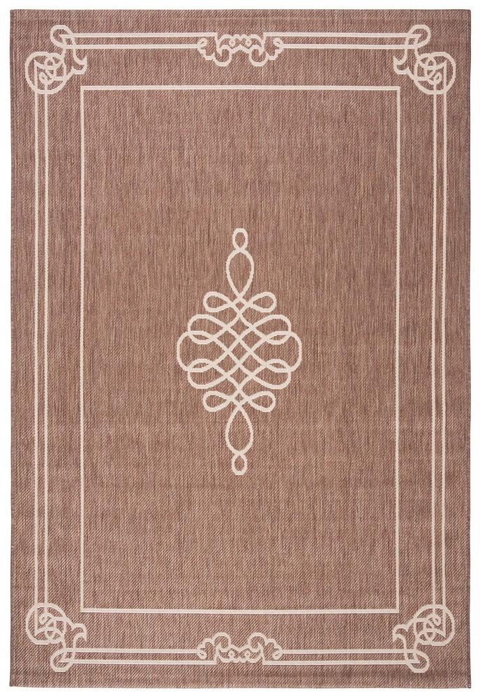 's Courtyard Collection is inspired by timeless designs crafted with the softest polypropylene available. This rug is crafted using a power-loomed construction and features a main accent color of chocolate. Perfect for any backyard, patio, deck or poolside, this rug will instantly turn your outdoor area into a resort-style entertaining space. Finely crafted for seasons in the sun and years of open-air gatherings, the Courtyard rug instantly elevates any interior or exterior décor to a space of visual inspiration. More than a decorative enhancement, and easy carefree maintenance. With its style, practicality, and transitional decorating options, this rug extends an open invitation to gather and may just spark impromptu parties. Primary Color: Chocolate Pile Height: 0.25 inches Material: Polypropylene Style: Contemporary Construction: Power-loomed Rug Type: Indoor/Outdoor Feature: Latex Free Rug Dimensions: 2'7" x 5' [STAIN, WEATHER, & UV-]: Expertly machine-woven from enhanced synthetic durable fibers that are stain, weather, and UV- and have a non-shedding 0.25-inch thick pile [KID & PET-FRIENDLY]: Safe for everyday indoor or outdoor high foot traffic and areas more prone to life’s unpredictable messes from kid or pet activity [TRENDY STYLE]: Design works beautifully in any room, including the patio, deck, kitchen, backyard, dining room, mudroom, playroom, living room, or entryway [EASY MAINTENANCE & DURABLE]: -free cleaning includes regular vacuuming, and rinsing with a garden hose with soapy water and air drying; When not in use for outdoors, we recommend storing away [TRUSTED BRAND]: has been a trusted brand and leader in home furnishings for over 100 years, using their expertise in crafting trendy high-quality designs; Begin your rug search with and explore over 100,000 products today