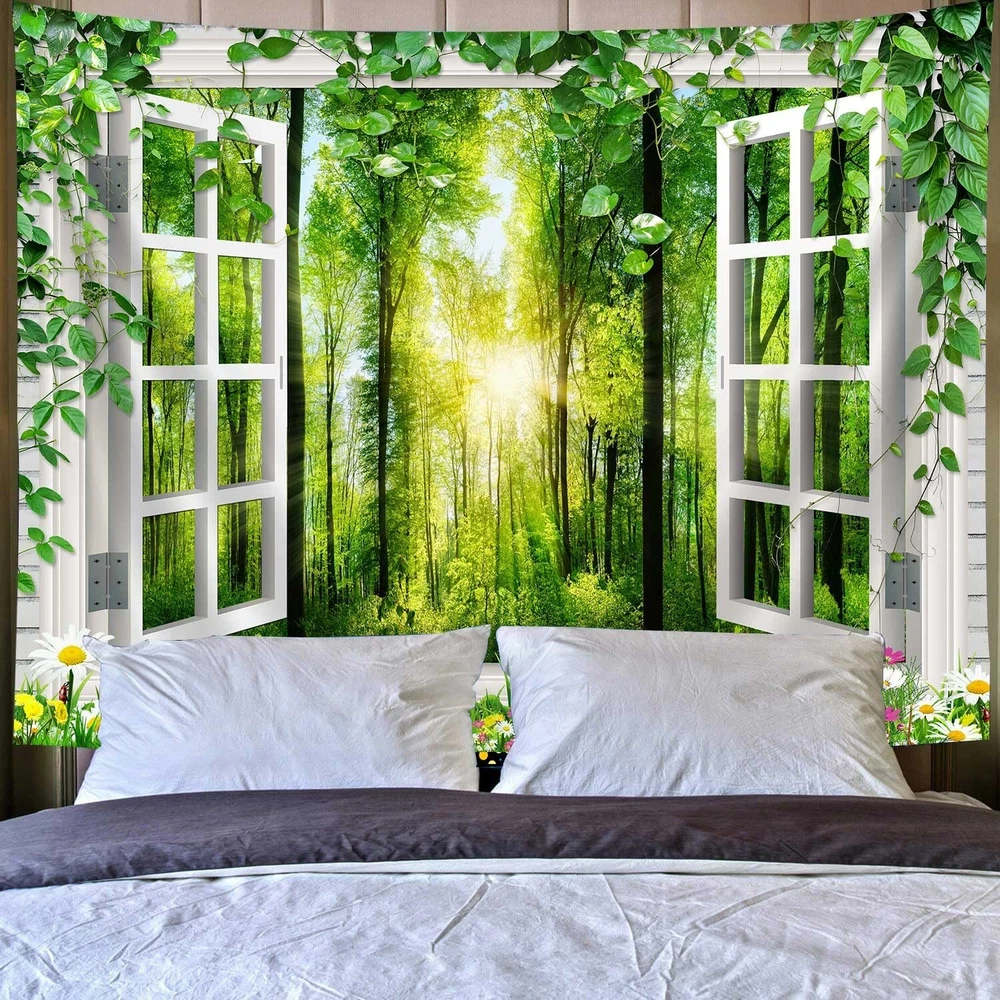 Coveimes Sunshine Forest Tapestry Wall Hanging, Nature Green Forest Trees Floral Bloom Spring Woodland Grasses Window Scenery Tapestries, Virgin Forest Wall Tapestry Decor for Living Room Bedroom Product Details Product Dimensions: 60 x 40 x 0.2 inches Item Weight: 6.1 ounces Manufacturer: Coveimes Date First Available: March 8, 2023 Tapestry Size - 60 x 40 inches with 8 seamless nail. This wall art size is suitable for most bedrooms living room or dormitories Fabric Material - 100% polyester fabric soft, sagging good, suitable for hanging on the Wall. This conventional piece of art will make a complete makeover of your wall or room or bed High Quality HD Print -This colorful tapestry uses digital printing technology to ensure that the pattern is highly clear without worrying about fading. Bright colors, clear lines make your room look new, no color difference Multifunctional - It's not just a Wall Hanging, it can also be used as Bed Cover, Table Cloth, Bedspread, Curtain, Beach Throw, Beach Wrap-around, etc. Bring home a lot of aesthetic effects from multiple usage. As a gift for your friends and family Money Back or Replacement Guarantee - Please do not hesitate to contact us if you have any questions. We will respond to all your e-mails within 24 hours with friendly customer service Thank you for choosing Coveimes tapestry! This boho decor tapestry with clear pattern design will let your room go for a dramatic makeover as wall art and home decor during all years. This dorm decor tapestry will make a complete makeover of your wall or ceiling or your bed or home decoration for another space. provide you with a colorful living environment, which will help transform your room into your private paradise. It is also a good choice as a gift for relatives and friends during the holiday season. Features This tapestry had printing with a beautiful picture and vivid colors and clear pattern design soft and comfortable, skin-friendly and safe. quality durable material, easy hanging and storage, no fading, no strange odor, toxic free and safe, can be cleaned and reused many times. Package Include 1 x Tapestry 8 x Nails Tips Hand wash or machine wash under a gentle cycle. Please use mild detergent with cold water. Do not scrub it hard and prevent sharp things and insolation. Wrinkles caused by folding can be removed by washing or steam ironing. Due to the difference between the display and the light, please allow a slight color deviation