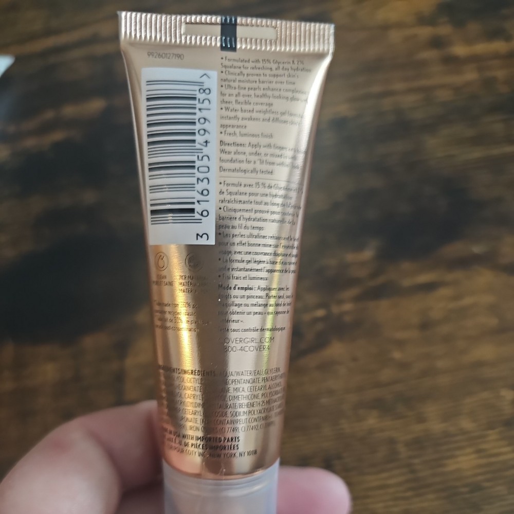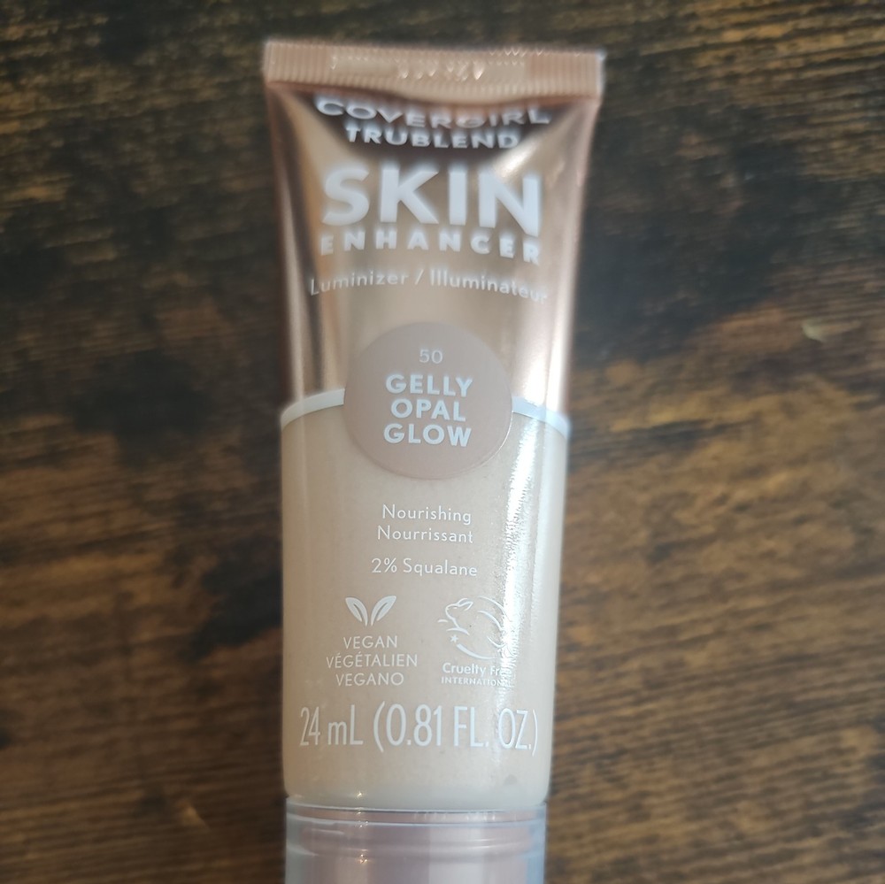This is a CoverGirl TruBlend Skin Enhancer in the shade Gelly Opal Glow. It is a full-size face luminizer. The primer is designed to smooth the skin, hydrate, and enhance complextion, providing a long-lasting effect. It is unscented and cruelty-free, made in the United States. The product has a volume of 0.81 fl. oz. and a Period After Opening (PAO) of 12 months.