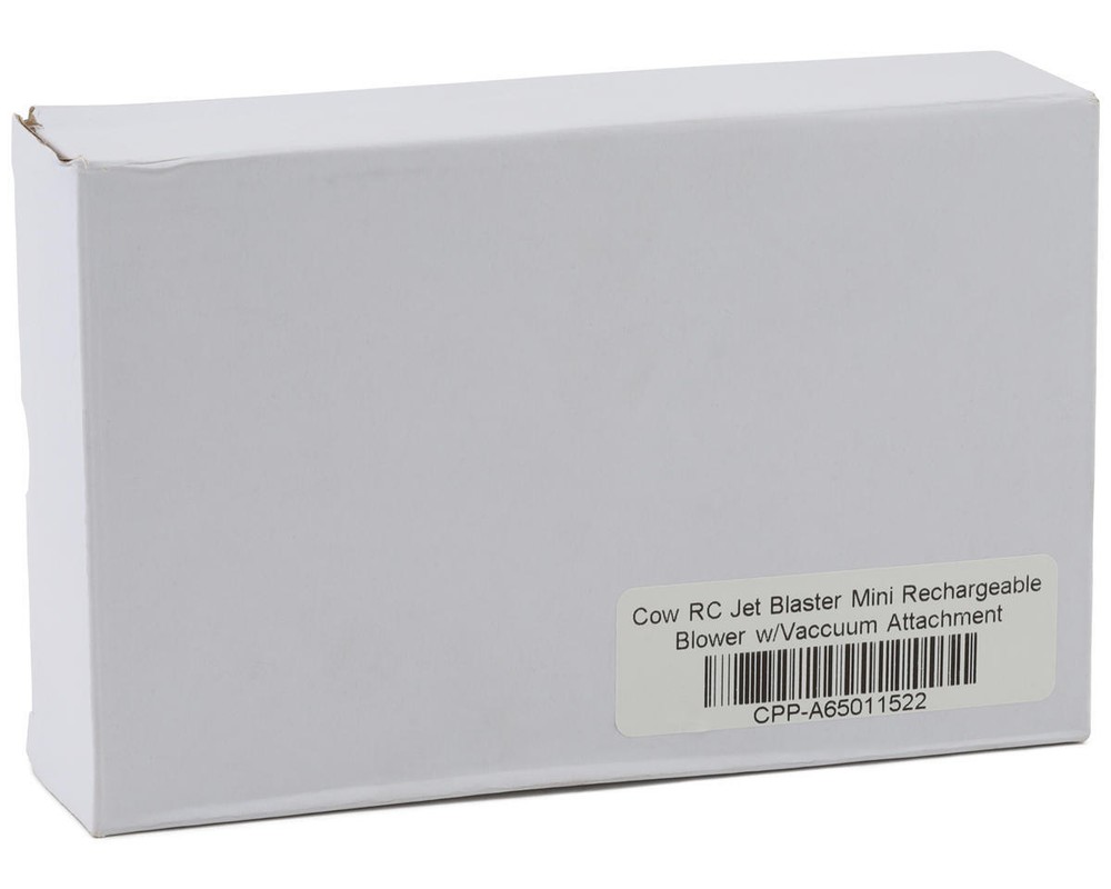 Jet Blower Overview: The Cow RC Jet Blaster Mini Rechargeable Blower with Vacuum Attachment is a versatile and powerful tool designed for precision cleaning and dusting. an impressively powerful yet compact tool designed to meet the needs of RC enthusiasts, hobbyists, and professionals alike. This mini blower packs advanced features into an ergonomically designed form, offering both versatility and convenience. The Jet Blaster Mini features continuously variable speed control, allowing you to precisely adjust the airflow. Despite its powerful performance, the unit is designed to be minuscule and ergonomic, making it comfortable to handle and easy to maneuver, especially in tight spaces. A unique reverse flow vacuum function sets this tool apart. It not only blows away debris but also vacuums it up into a convenient collection basket, making cleanup quick and efficient. The device is USB rechargeable, providing convenience and eliminating the need for batteries. Features: Powerful airflow with continuously variable speed control Unique reverse flow vacuum function with collection basket Multiple attachments for different applications and uses Quick and efficient USB-C charging Lightweight and compact, travel-friendly design Battery level indicator Sleek black color with easy-to-operate sliding speed control Specifications: Operating Voltage: 6-8.4V Operating Temperature: 32-140°F (0-60°C) Battery Capacity: 2000mAh x 2 Charging Time: 2.5 hours Weight: 225g Dimensions: 5.5x4.17x1.57in (140x106x40mm) Includes: (1) Cow RC Jet Blaster Mini Rechargeable Blower with Vacuum Attachment (1) USB-C Type-C charging cable (1) Multi-use nozzle (1) Charging nozzle (1) Blow nozzle (1) Dust cup (1) Vacuum nozzle (1) Brush nozzle About Us | View Store