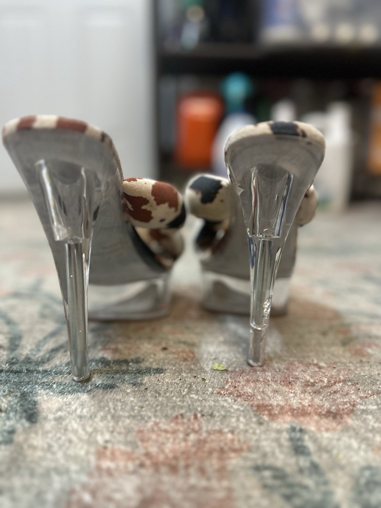 Elevate your ensemble with these chic Cowering Heels, featuring a sleek faux suede upper and a striking clear heel that adds a touch of modern elegance to any outfit. The platform style provides an extra boost of height while maintaining comfort, making them perfect for a night out or a special occasion. Designed with practicality in mind, these heels offer a slip-on style for easy wear and are crafted with a durable fabric outsole for steady traction. True to size with a US 11 fit, they're a versatile addition to any wardrobe, pairing seamlessly with both casual and formal attire.
