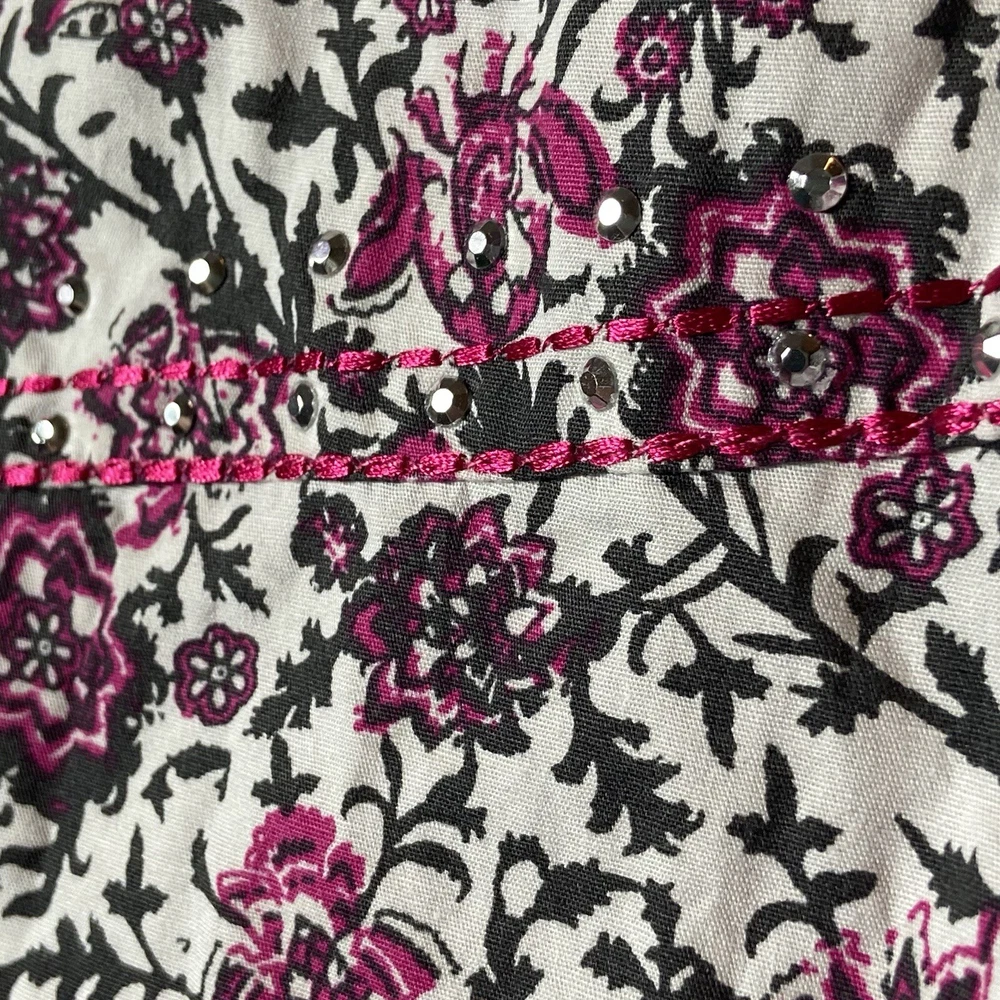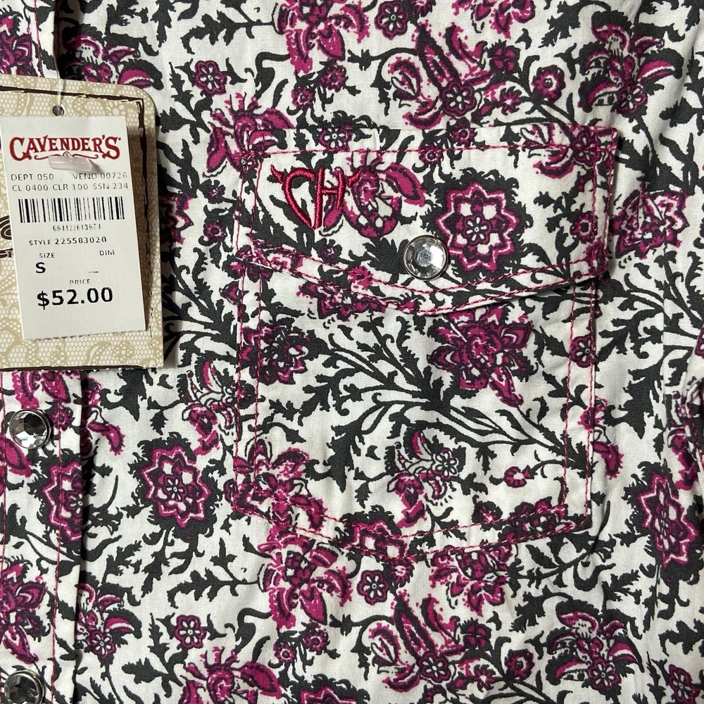 New with tags pink and green with gem snaps and studded details on back and pockets. Small. From Cavendar’s by CW Cowboy.