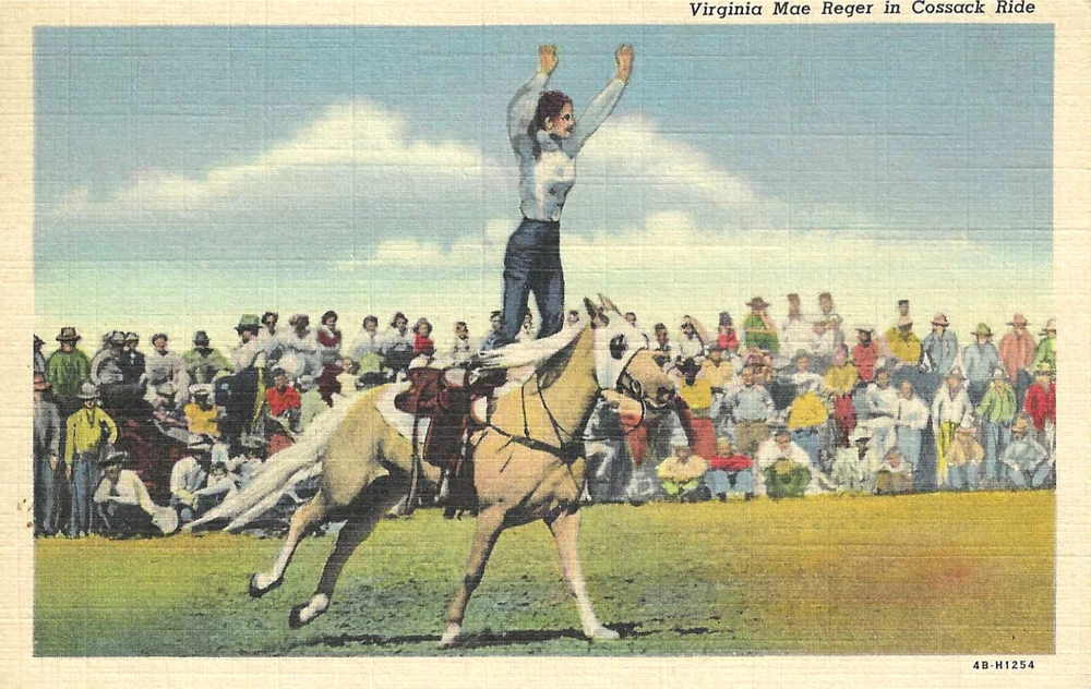 Cowgirl Virginia Mae Reger In Cossack Ride Horse Unposted Linen WB Postcard The card is in good condition for it's age as shown above in the actual photos of this item. Standard sized vintage postcard. Minor, creases, corner issues, and etc. are to be expected from an item of this age. Please see photos. I pack with thick cardboard around the sleeved card and provide tracking with shipping. Purchase multiple postcards at the same time and combine shipping for a discounted shipping rate! See our store for more postcards like this one! Reduced shipping available when purchasing more than one postcard at the same time!