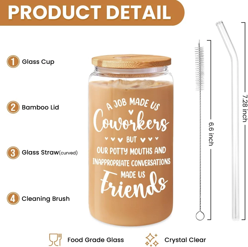 Please be aware that the final product might look slightly different compared to the images shown due to different computer monitors or mobile color display Spread the love: our 16 ounce glass bottle is an ideal present for friends who love iced coffee, smoothies, or any lovely beverages; our product combines trendy design with functionality, making it an ideal choice Practical choice: whether you're working or on the go, our glass bottle with a lid and straw helps you enjoy your favorite beverage; with its clear design, you can sip stylishly, all while making a sustainable choice Simple to clean: for a thorough clean of our product, we highly suggest washing with hands; the parts are detachable, this means can clean the glass cup, bamboo lid and glass straw separately Aesthetic gift: our 16 ounce glass bottle comes packaged with a bamboo lid and a glass straw, making it a good and sustainable gift for multiple occasions like birthday, anniversary or the holidays Product Description
