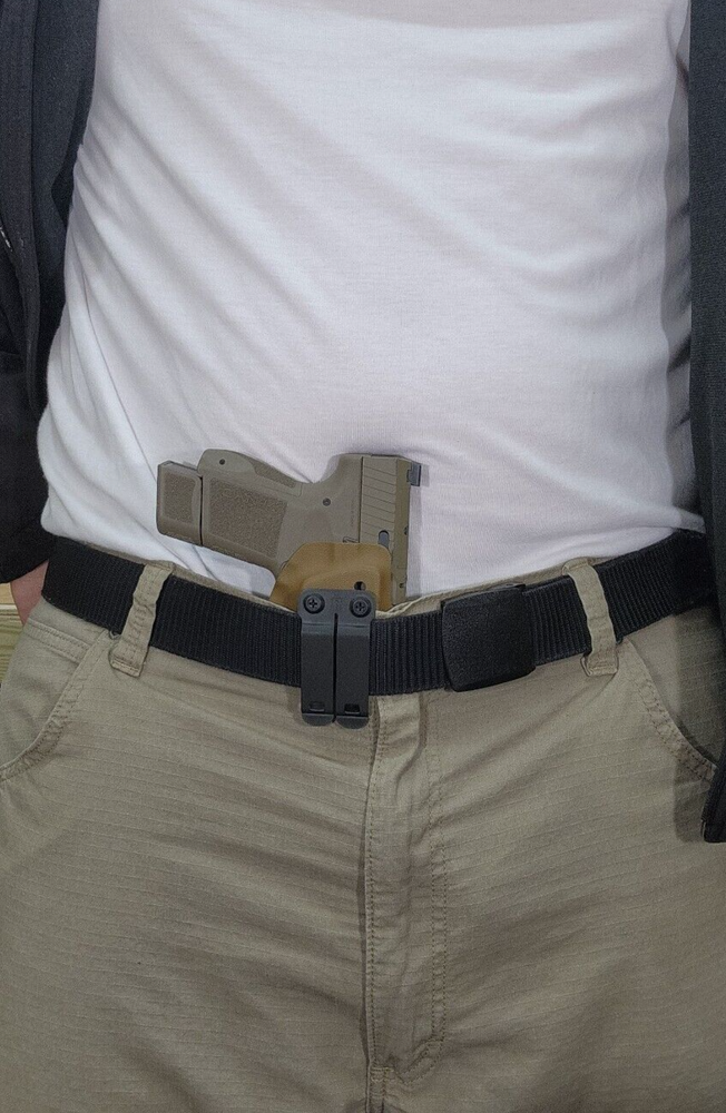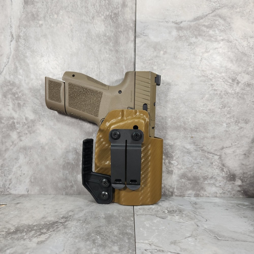 Color: Brown Carry Location: Appendix, Inside Waistband (IWB) Country/Region of Manufacture: United States For Gun Make: CZ-USA, GLOCK, Heckler & Koch, Ruger, SIG SAUER, Smith & Wesson, Springfield Armory, Taurus, Canik, Shadow Systems Type: Concealment Holster Brand: Tomlin Holsters For Gun Type: Pistol Level: Level 1 Attachment Type: Clip Material: Carbon Fiber, Kydex