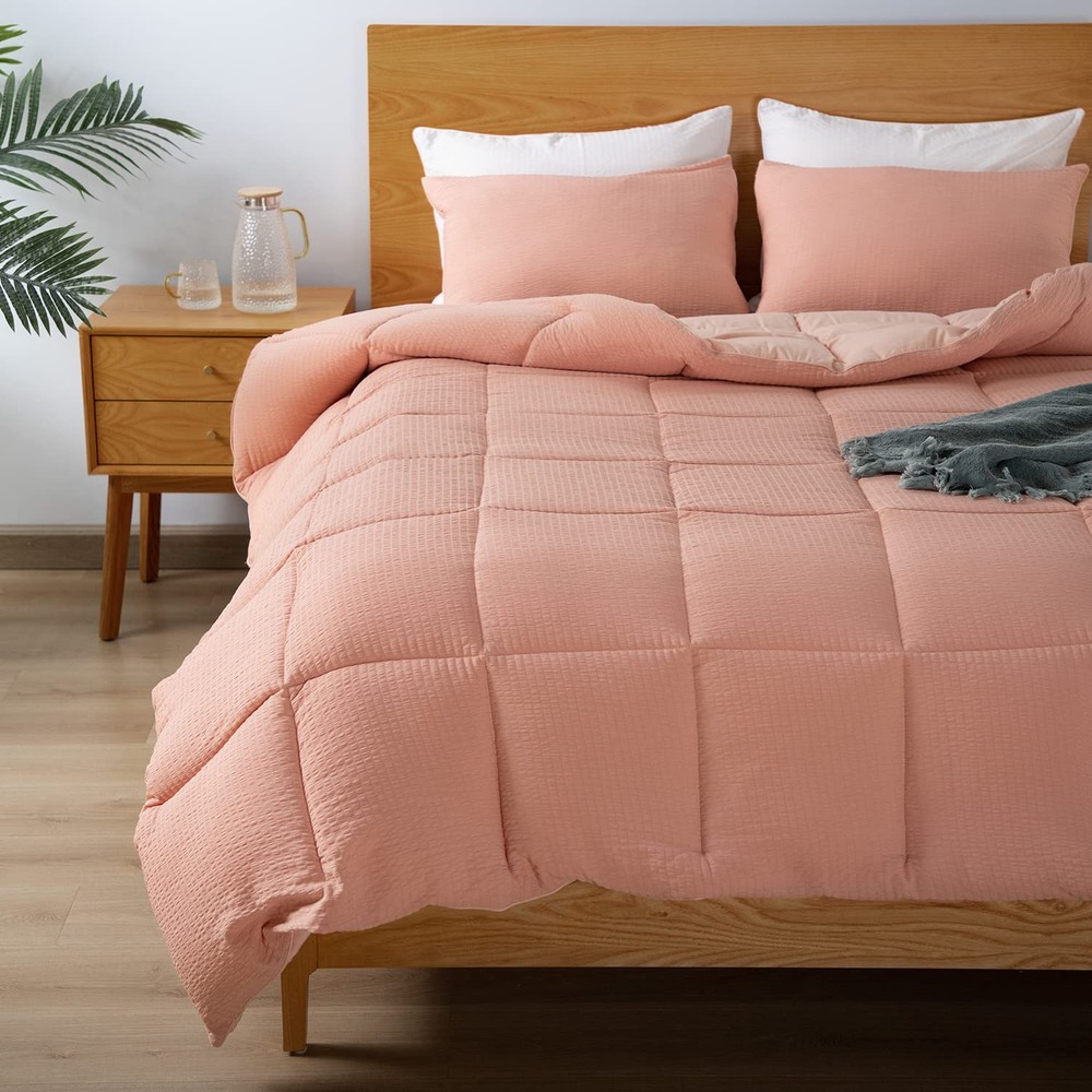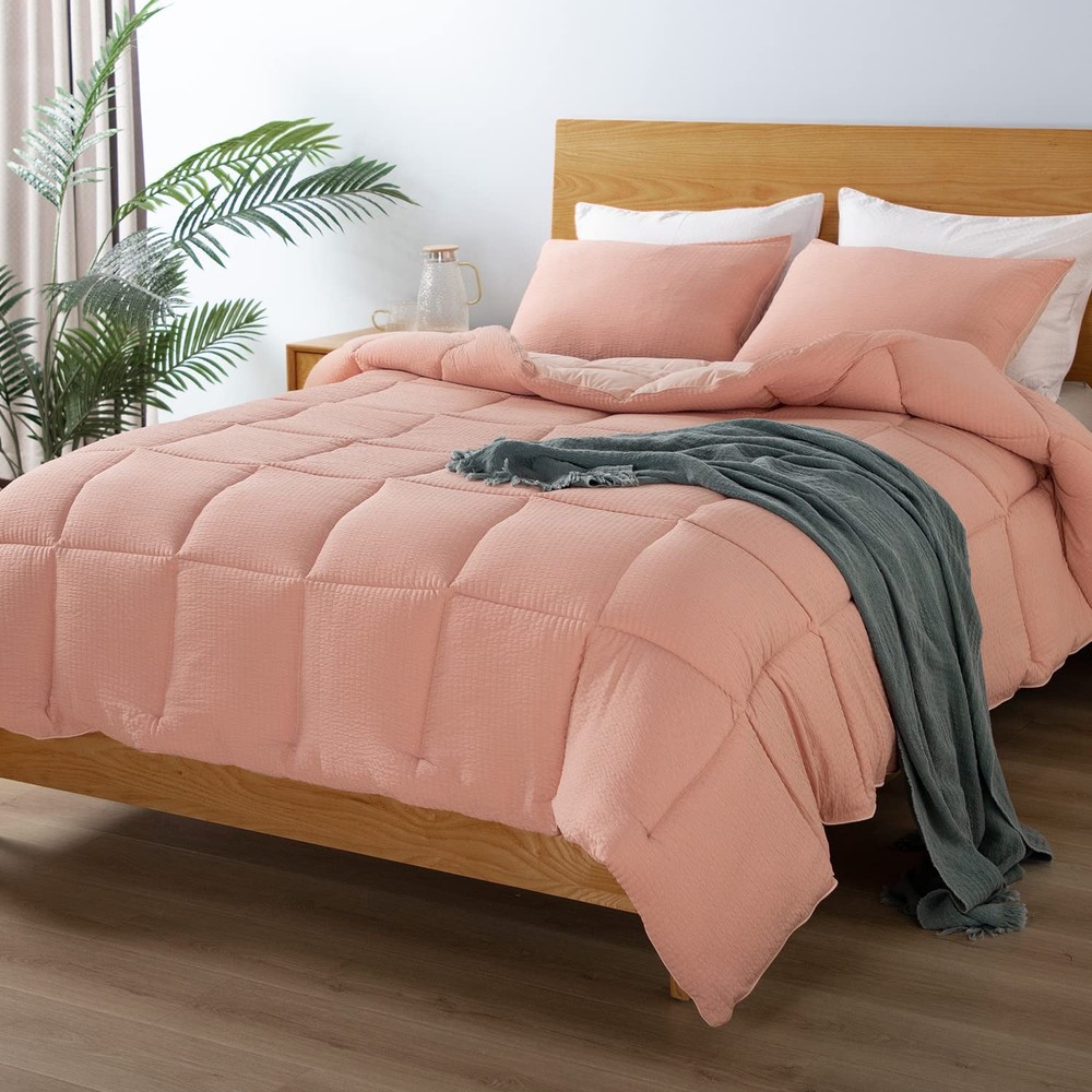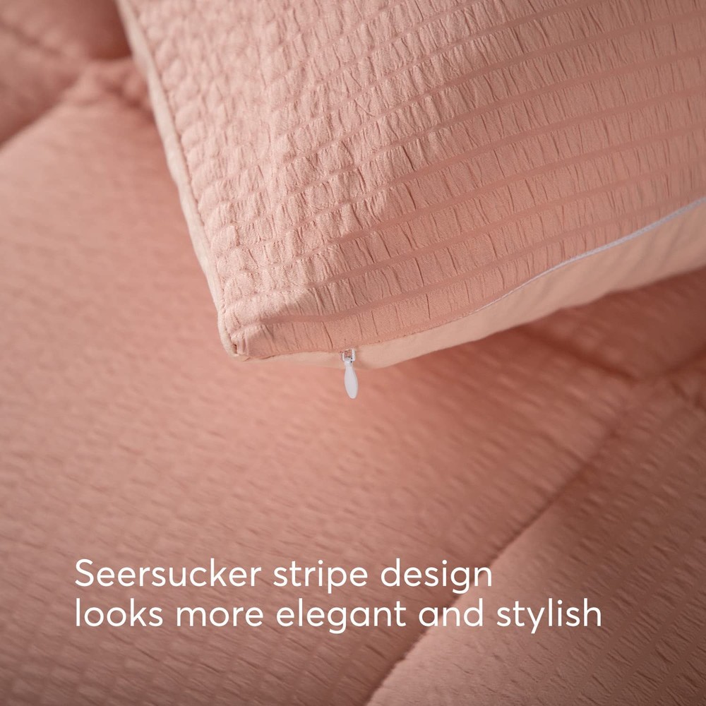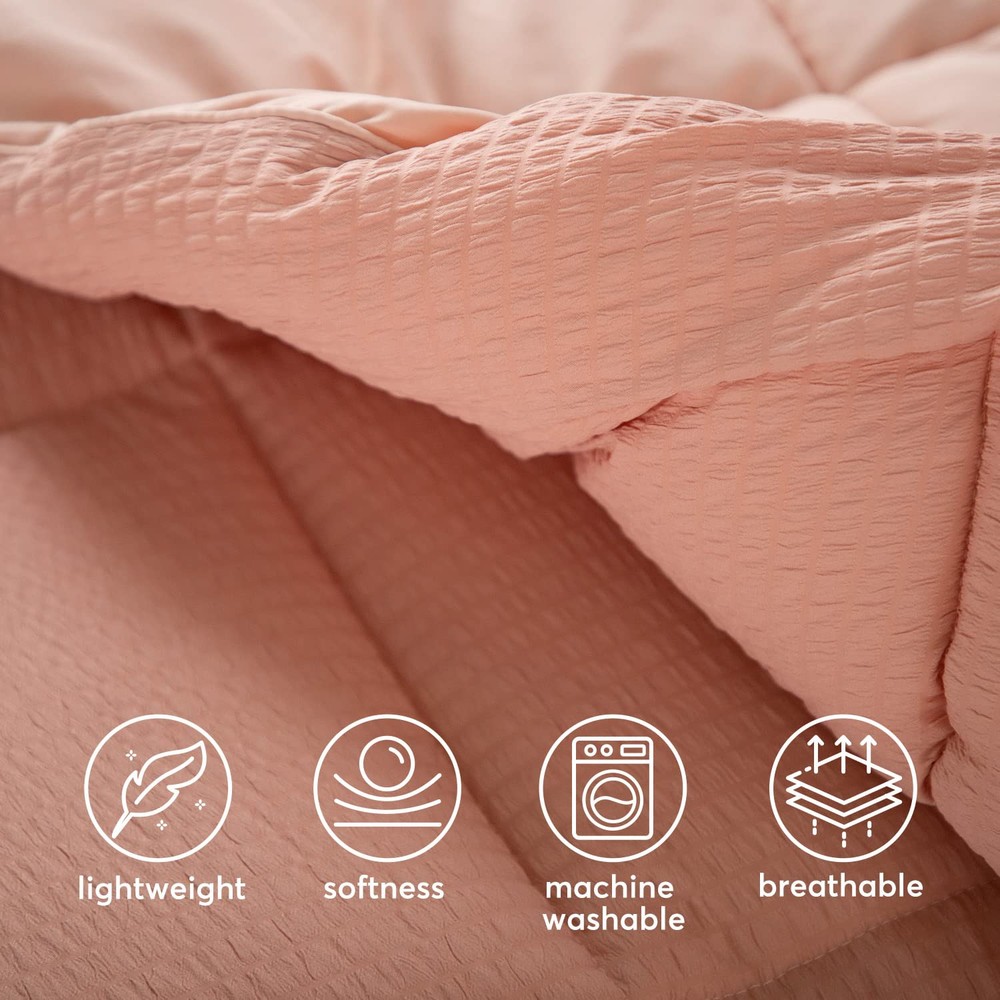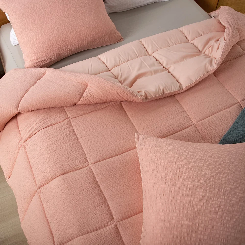 This comforter set is perfect for year-round comfort! The seersucker texture adds a stylish touch while staying incredibly soft and cozy. I love how the box stitching keeps it fluffy without shifting, and the matching pillow shams complete the polished look. The lightweight warmth is just right—great quality for the price. My bedroom feels so inviting now!