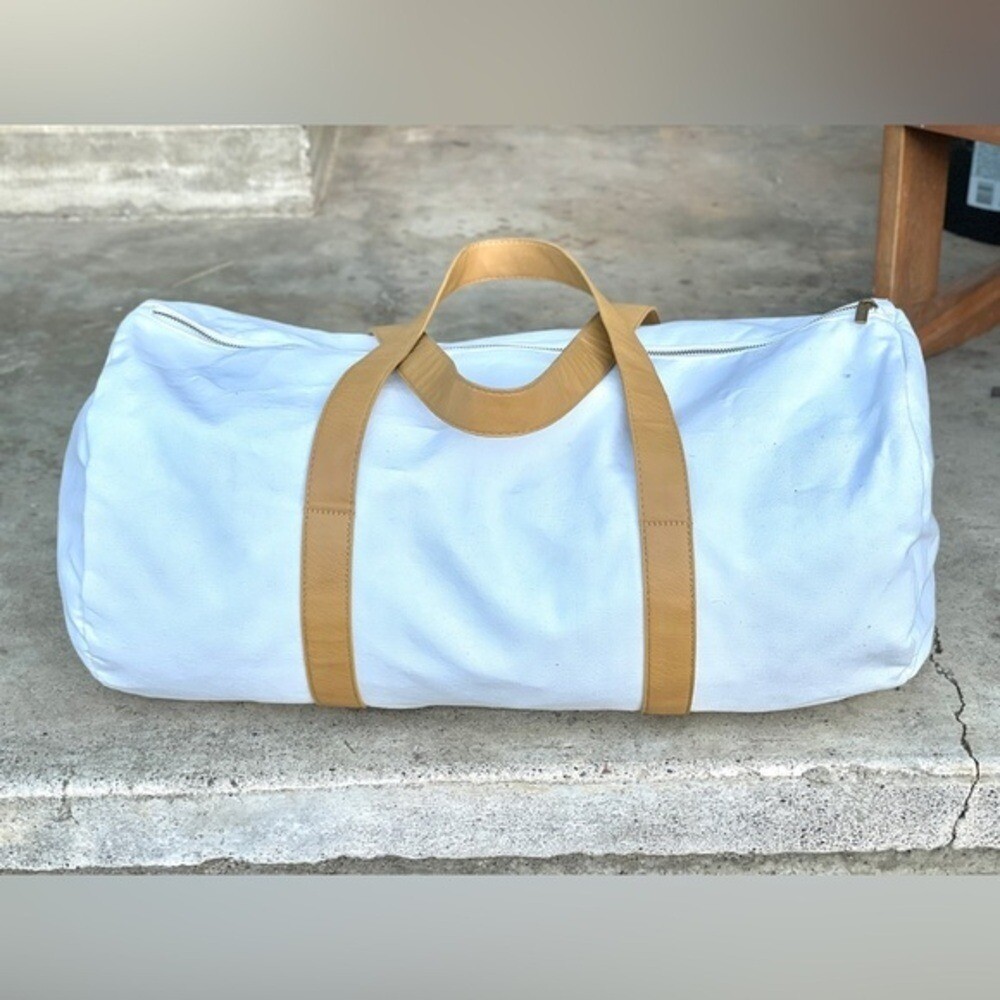 Cozy Earth Lightweight Canvas Duffle White, fully lined Faux leathered handles 12x12x23 Bag only