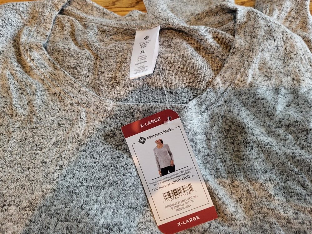 For sale new with tags: Members Ladies Pullover Shirt Cozy Top Gray Heather XL Long Sleeve Stretch Size: XL Color: gray heather Approximate measurements: arm pit to arm pit: 23.5" shoulder to bottom:26" bottom opening: 24" Open bottom Please email with any questions