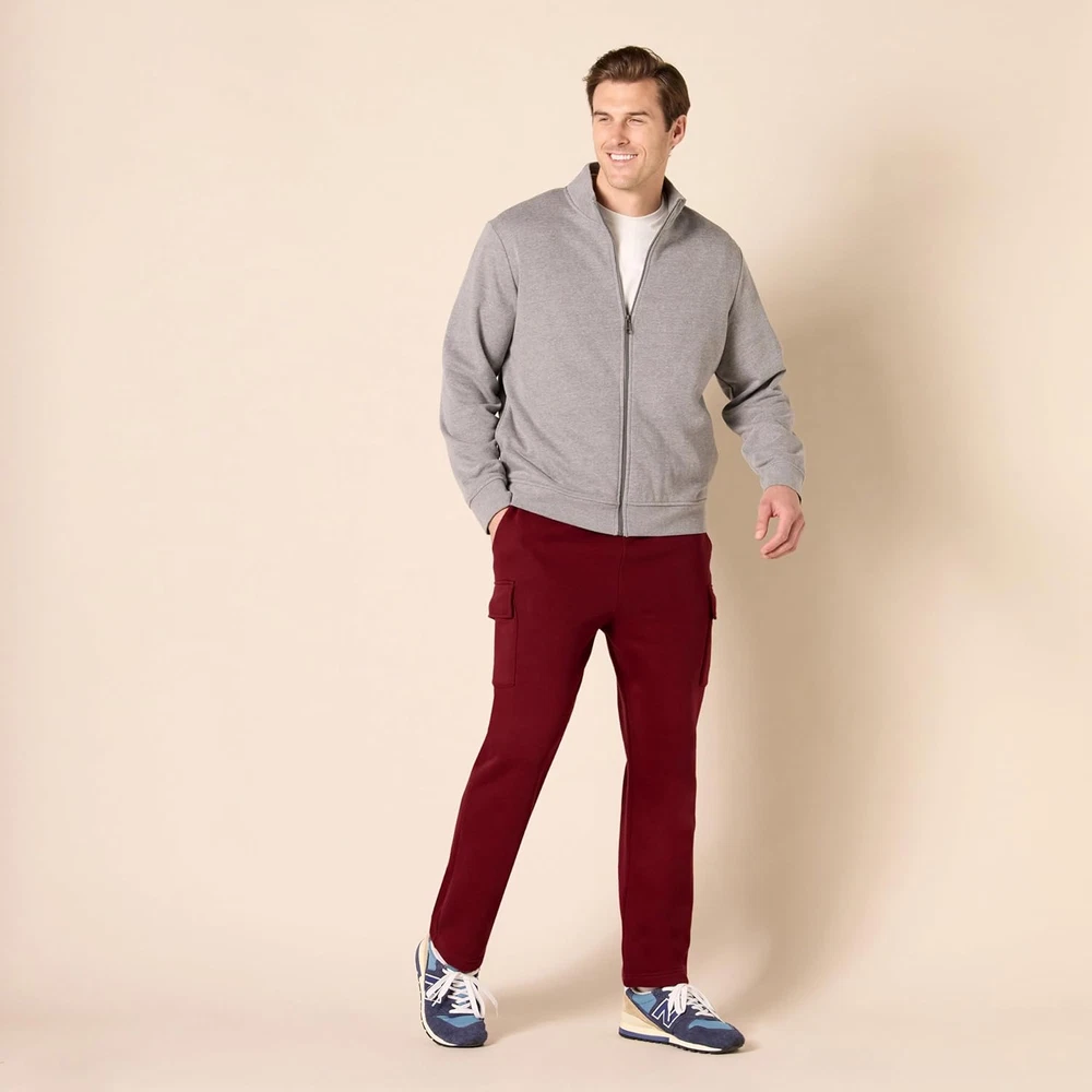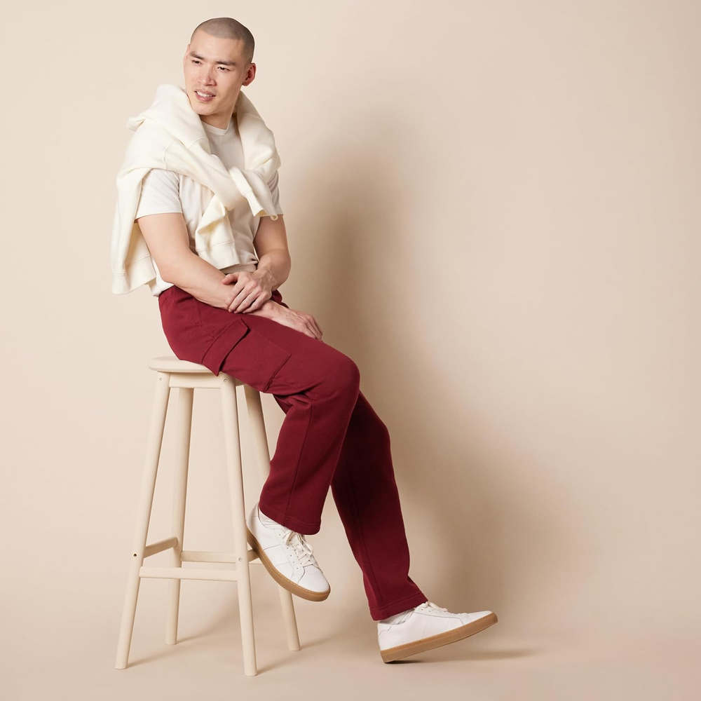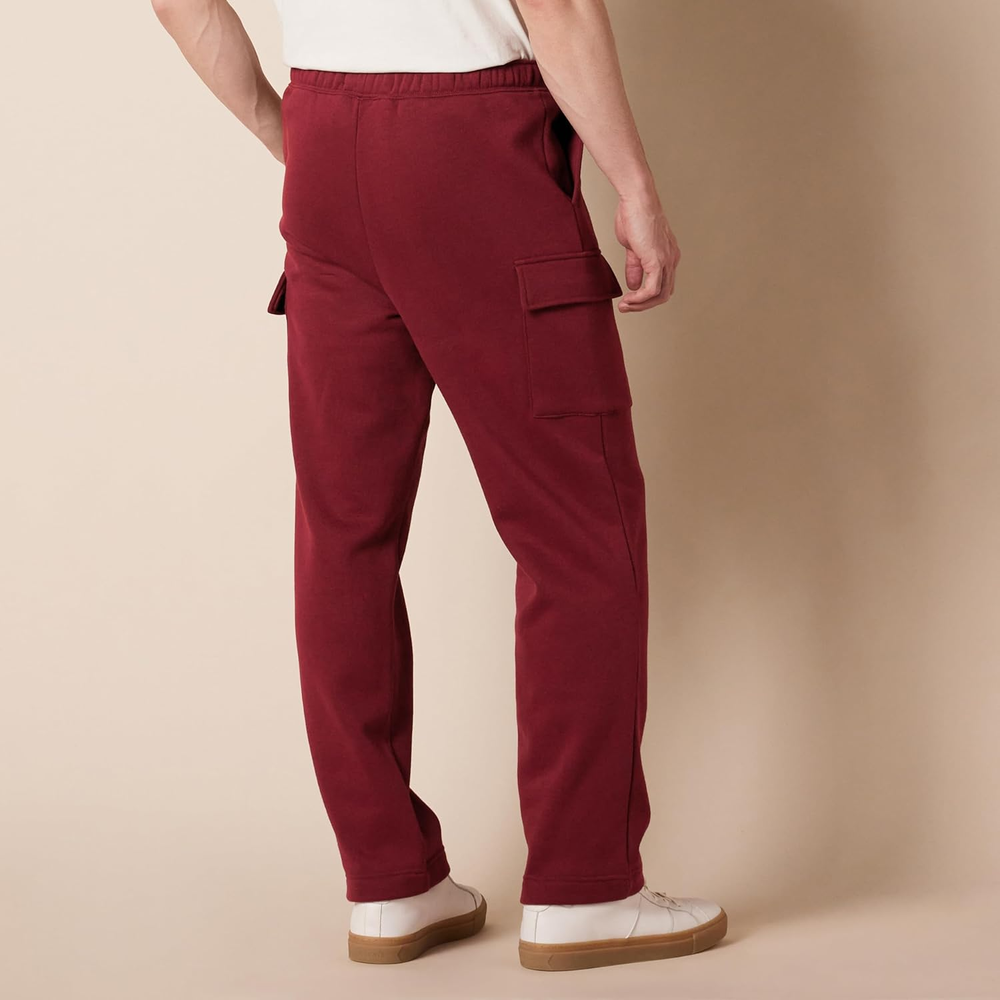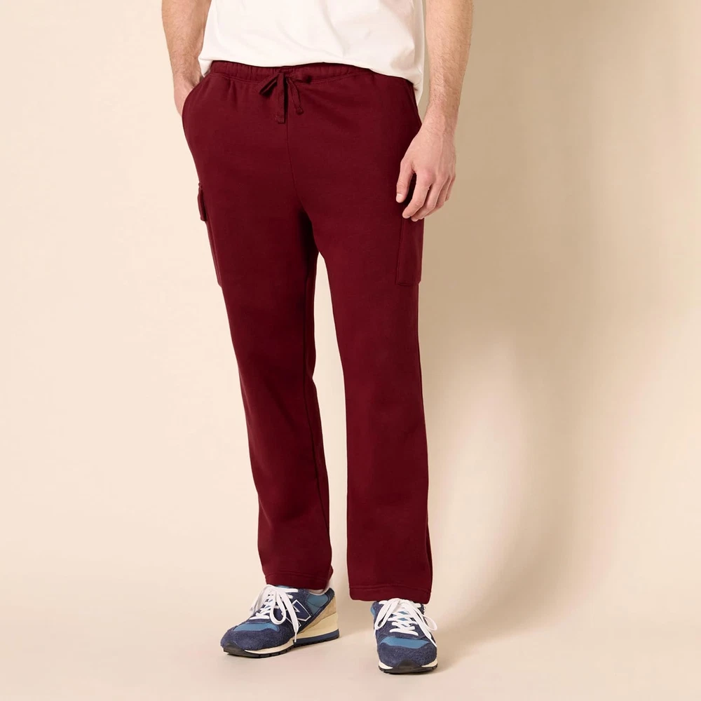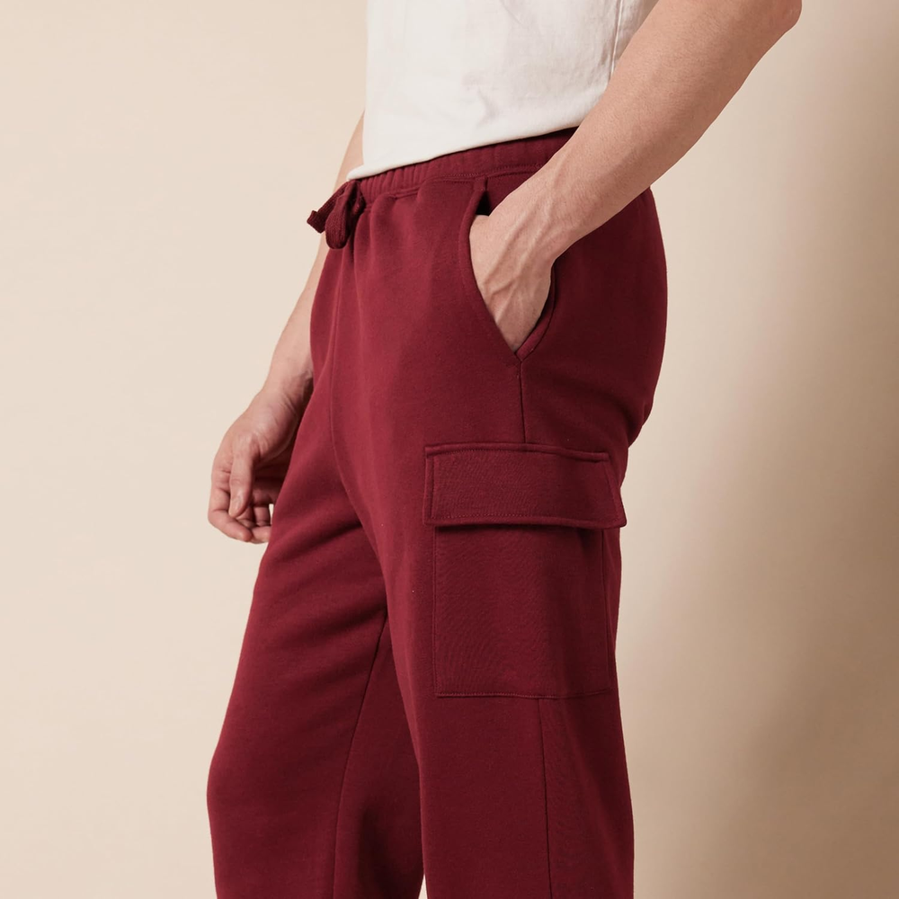 The Amazon Essentials Men's Fleece Cargo Sweatpants are designed for those who value comfort and functionality in their activewear. Crafted from high-quality fleece, these sweatpants provide a soft and cozy feel, making them perfect for lounging at home or running errands. The cargo pockets add practicality, allowing you to carry essentials like your phone or keys without the need for an additional bag. Whether you're hitting the gym, going for a casual walk, or simply relaxing on the couch, these sweatpants offer the versatility you need for various activities. Engineered with a focus on durability and style, these sweatpants feature an elastic waistband for a secure fit and adjustable drawstrings for added comfort. The dark red color provides a modern touch, making it easy to pair with your favorite tees or hoodies. With consistent sizing, you can shop with confidence, knowing that these sweatpants will fit as expected. Elevate your wardrobe with the perfect blend of comfort and practicality that the Amazon Essentials Men's Fleece Cargo Sweatpants deliver. Soft and cozy fleece material for maximum comfort. Functional cargo pockets for convenient storage. Elastic waistband with adjustable drawstrings for a personalized fit. Durable construction designed for long-lasting wear. Stylish dark red color that complements a variety of outfits.