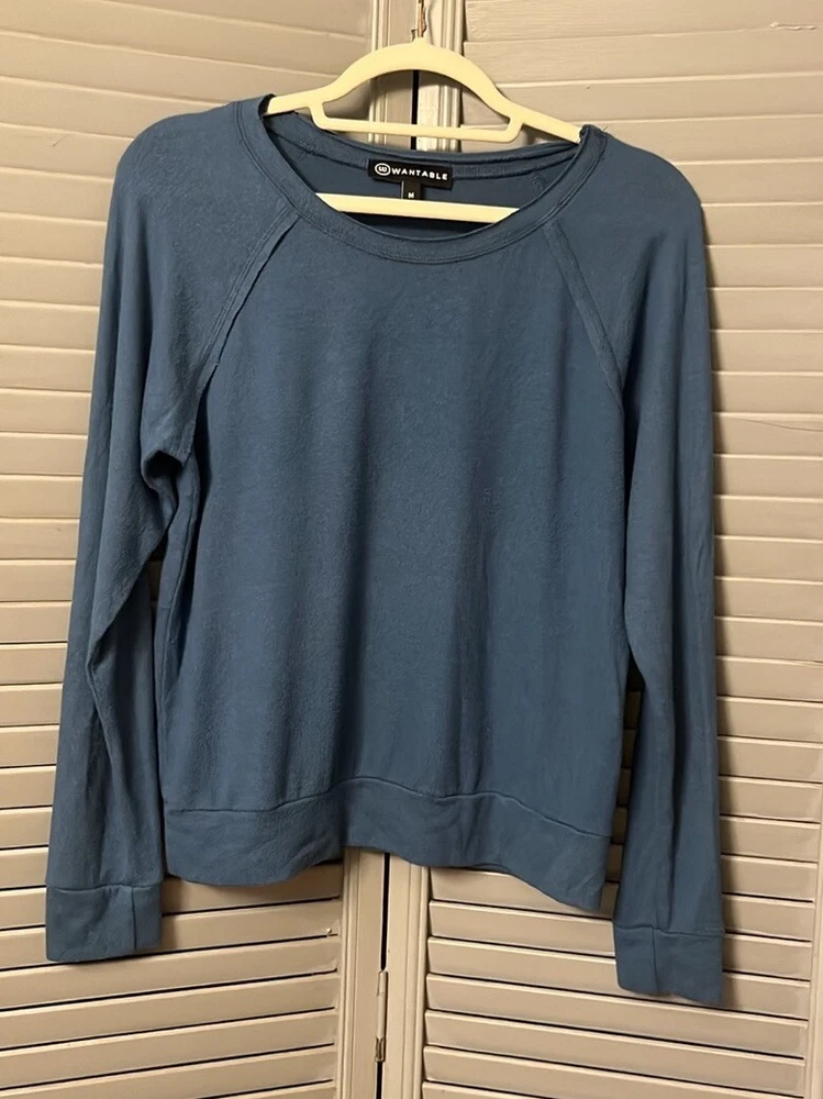 This Wantable knit top is the perfect addition to your wardrobe. With a solid pattern and cropped style, it's a versatile piece that can be dressed up or down for any occasion. The top features raglan sleeves, raw edge seams, and a round neckline with a pullover closure. It's made of a soft and comfortable brushed fabric, a blend of polyester, spandex, and rayon, ensuring a comfortable fit all day long. The blue color is perfect for any season and can be paired with jeans, leggings, or skirts. It's machine washable for easy care, and the stretchy fabric makes it easy to wear in any size. Whether you're traveling or just running errands, this top is a must-have. See pics for details. Excellent preowned condition! Reasonable offers welcome!