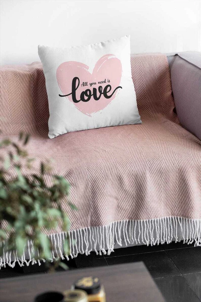 Cozy Valentine's Day Square Pillow - All You Need Is Love Design, Perfect Gift