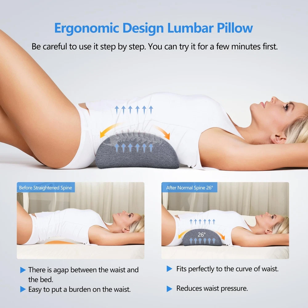 【 Heated Lumbar Support Pillow 】 We added heat function on the basis of ordinary lumbar pillow. Lumbar pillow follows the natural arch of the lower back, providing comfort and mild support for the lumbar and help improve wrong posture. Combined with graphene heating therapy, it appropriate relieves waist pain, sciatic nerve and scoliosis, and keeps your hip and spine in ideal alignment while sleeping. (NOT USING the heating function while sleeping.) 【 Ergonomic Lumbar Pillow 】 The wrapped two-wing design to help improve spine posture, prevent the strain of lumbar muscles and make the lumbar spine stretch, perfect for relieving lumbar pressure evenly keep the waist curve. The waist support pillow fills the gap between the waist and bed, gently supports the lower back, and distributes the pressure to reduce the burden on the lower back, relax the muscles of the lower back and waist. Help achieve an ideal posture and a fit to the waist. 【 Thermal Therapy 】 When you choose to use USB heating function (Temperature regulation and automatic shut-off), heated lumbar pillow help blood circulation, and relieve lower back pain, sciatic nerve. 9 convex points are designed to help take care of the lumbar spine. The USB heating lumbar pillow has 3 adjustable temperatures and 3 hours automatic shutdown function, provide you with comfortable temperature to meet the heating requirements of most customers. 【 Premium Memory Foam 】 Inner material is made with 100% premium quality high density memory foam, which can retain its shape for continued support With breathable and moisture-wicking properties, comfortable back lumbar pillow provides long-lasting comfort for hours. Superior to other bed positioned pillows, it won't go flat over time and provides moderate support and spinal alignment. Our lumbar bed pillow comes with hypoallergenic, removable zipper breathable pillowcase, easy cleaning. 【 Widely Application 】 This lower back pillow lumbar support cushion not only relieve your lower back Pain while adapting to the curve of your spine when sleeping on your lower back, but also can be placed in the calf or below the knee as a leg pillow. Waist pillows apply for bed, chair, sofa, you can relax your waist and relieve waist fatigue at home, in the office and in the car at any time. Suit for side sleeper, back sleeper, stomach sleeper, Long time driver, desk workers. * Regarding the USB heating function, this product can't be recharged, it can only keep the USB cable connected to the power supply to use the heating function, there is no plug or power supply in the package, only one USB cable with controller. When using, you need to plug the USB cable into the power bank, PC or USB adapter (5V=1A charger/DC USB input). Do not use the heating function in a closed space without heat dissipation, such as a bed quilt, to avoid burns. * When using the USB heating function, do not use it on the surface of thick clothes, otherwise the heating heat will not be felt. If it heats up too quickly, you can use clothes and towels to keep a certain distance from your back, use the controller to adjust the temperature or temporarily turn off the power. * The height of the lumbar pillow is 2.4 inches at the center and the length is 17.7 inches.