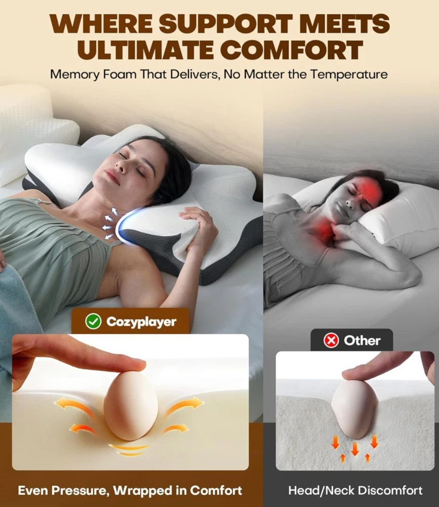 The Cozyplayer True Cooling Cervical Neck Pillow is designed to provide pain relief and support for the neck and armrest area. Made by the brand cozyplayer, this cervical pillow comes in a sleek charcoal color and features a cooling design to keep the area comfortable and cool while sleeping. Ideal for use in the bedroom, this pillow is perfect for those who struggle with neck pain and want a supportive and comfortable armrest area.