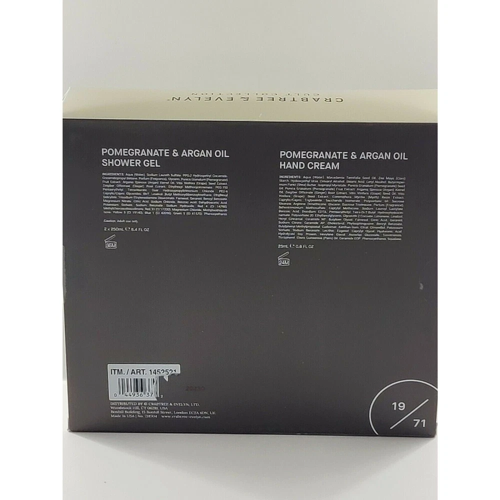 Crabtree & Evelyn Cult Collection Pomegranate & Argan Oil Shower Gel & Hand Cream Our Pomegranate & Argan Oil Shower Gel is a day-to-day treat for all the senses with a scent designed to let your imagination run wild. • Works quickly into a rich lather to soothe and nourish skin. • Releasing a heady fragrance, inspired by our travels to Morocco. • Combines hydrating argan oil and antioxidant-packed pomegranate fruit extract.