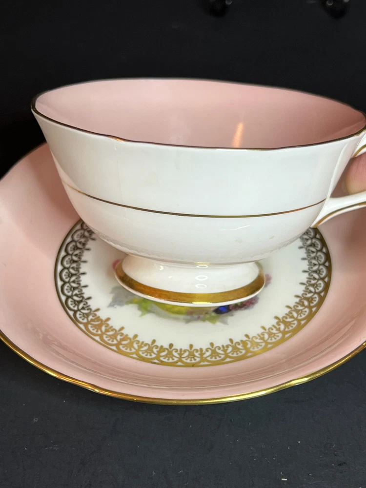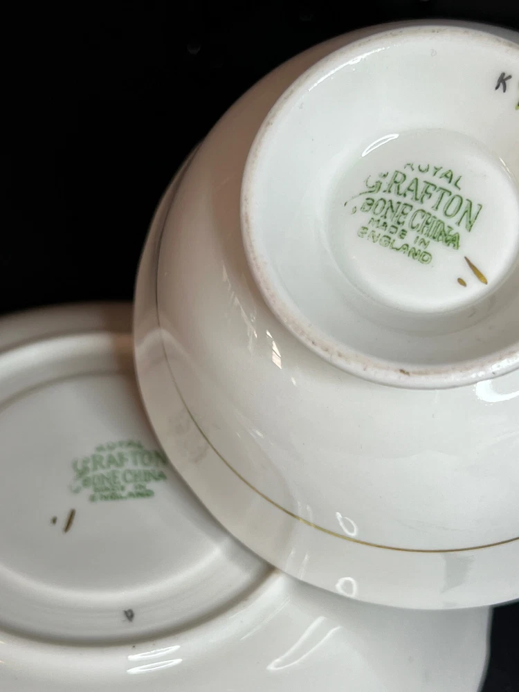 Crack! Vintage Royal Grafton Bone China Pink Gold Rim Fruit Tea Cup & Saucer. There is a hair line crack in the cup that I did not see until photos . The set is being sold as is . Please check last photos. Thanks for looking !