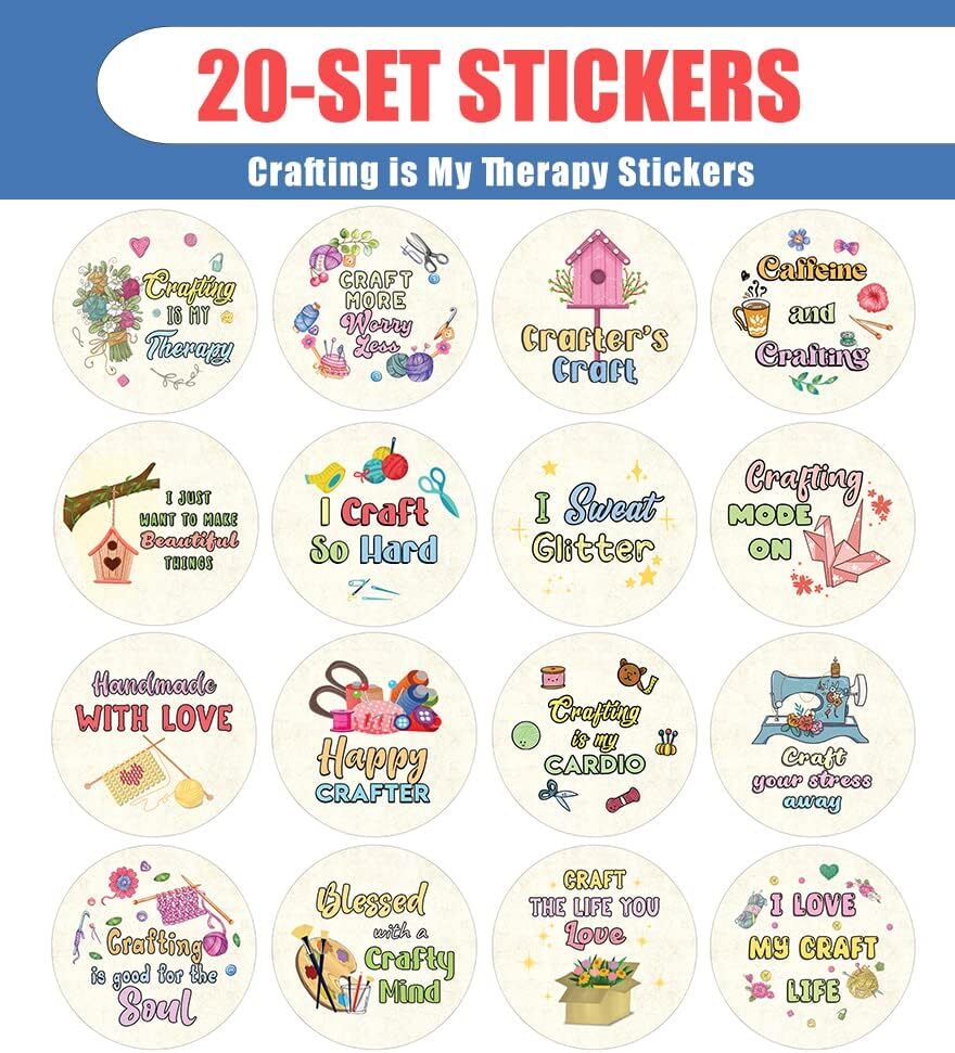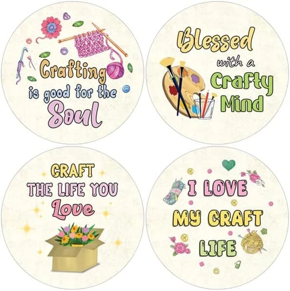 16 UNIQUE DESIGNS INSPIRING STICKERS FOR YOUR DIY PERSONALIZED DECORATIONS - Creanoso Crafting is My Therapy Stickers (20-Sheets). These colorful and uniquely inspiring round shaped stickers are the best tool for DIY decoration and personalization of your belongings. GREAT STOCKING STUFFERS , TEACHING SUPPLEMENTARY MATERIALS, AND GIVEAWAY - Great stocking stuffers gifts for Boys, Girls, Teens, Kids. A perfect design to give during classroom school activities, home schooling,birthdays, anniversaries, family day, and any other special occasions. MADE WITH DURABLE AND WATERPROOF MATERIALS - There is a lamination or coating to make the stickers high water resistant, and WILL NOT fade from the water. The stickers can stick it anywhere you like, and it sticks there and lasts a long time A COLORFUL AND DECOR STICKER DECAL - Each sheet with 16 individual round stickers. There are 20 sheets , with a total of 320 pcs of stickers. STICKER SIZE: 1.5 INCHES IN DIAMETER Crafting is My Therapy Stickers (20 Sets X 16 Designs) COLORFUL AND COLLECTION OF TEXT STICKERS • Well designed. • Very encouraging. • Self-adhesive. Crafting is My Therapy Stickers (20 Sets X 16 Designs) are super fun to collect; you can't have just one! That's why you will find a selection of stickers right here. Each package comes with different stickers in a variety of designs. Stick them here, stick them there, stick them everywhere! Everyone will love these self-adhesive stickers. These colorful stickers are perfect for any adults and these come with very inspiring messages and bright pictures. A fun, inexpensive way to add a decorative, notes, and stationery. Delight yourself with uplifting messages designs that are very encouraging. Crafting is My Therapy Stickers (20 Sets X 16 Designs) perfect for giveaways, behavior incentives, prizes! These stickers are acid-free, nontoxic, and safe for use on photos. This product comes with a 60 days money back guarantee. You can return them to us for a full refund.