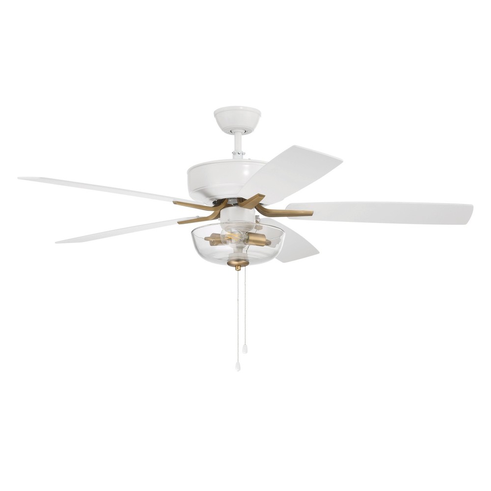 The ideal combination of excellent performance, exceptional value and timeless style, the Craftmade Pro Plus 52" ceiling fan with clear glass bowl light with non-dimmable LED bulbs included featuring a clean motor, updated straight blade arms and canopy is built for performance. The dual mount, 3-speed, reversible fan includes custom 52" reversible blades. Optional remote controls are available(Sold Separately). Features: Standard Pull Chain Speed Control Brushed Nickel - Custom Reversible Driftwood/Grey Walnut Blades Included Flat Black - Custom Reversible Flat Black/Grey Wood Blades Satin Brass - Custom Reversible Black Walnut/Flat Black Blades White/Satin Brass w/ White/Washed Oak Blades White/Polished Nickel w/ White/Washed Oak Blades Free Shipping Over $49.99* Details Craftmade 52" Pro Plus 101 Ceiling Fan - 52 Product Description: The ideal combination of excellent performance, exceptional value and timeless style, the Craftmade Pro Plus 52" ceiling fan with clear glass bowl light with non-dimmable LED bulbs included featuring a clean motor, updated straight blade arms and canopy is built for performance. The dual mount, 3-speed, reversible fan includes custom 52" reversible blades. Optional remote controls are available(Sold Separately). Features: Standard Pull Chain Speed Control Brushed Nickel - Custom Reversible Driftwood/Grey Walnut Blades Included Flat Black - Custom Reversible Flat Black/Grey Wood Blades Satin Brass - Custom Reversible Black Walnut/Flat Black Blades White/Satin Brass w/ White/Washed Oak Blades White/Polished Nickel w/ White/Washed Oak Blades Dual Mount (Flat or Angled Ceiling up to 23°) Suitable for Indoor only Included (Optional) 2 x 7 Watt LED Bulb Light Kit (Non-Dimmable) Standard, 3-Speed Reversible Motor 4 inch Downrod Included Energy Guide 3343 CFM, High Speed 4598 CFM