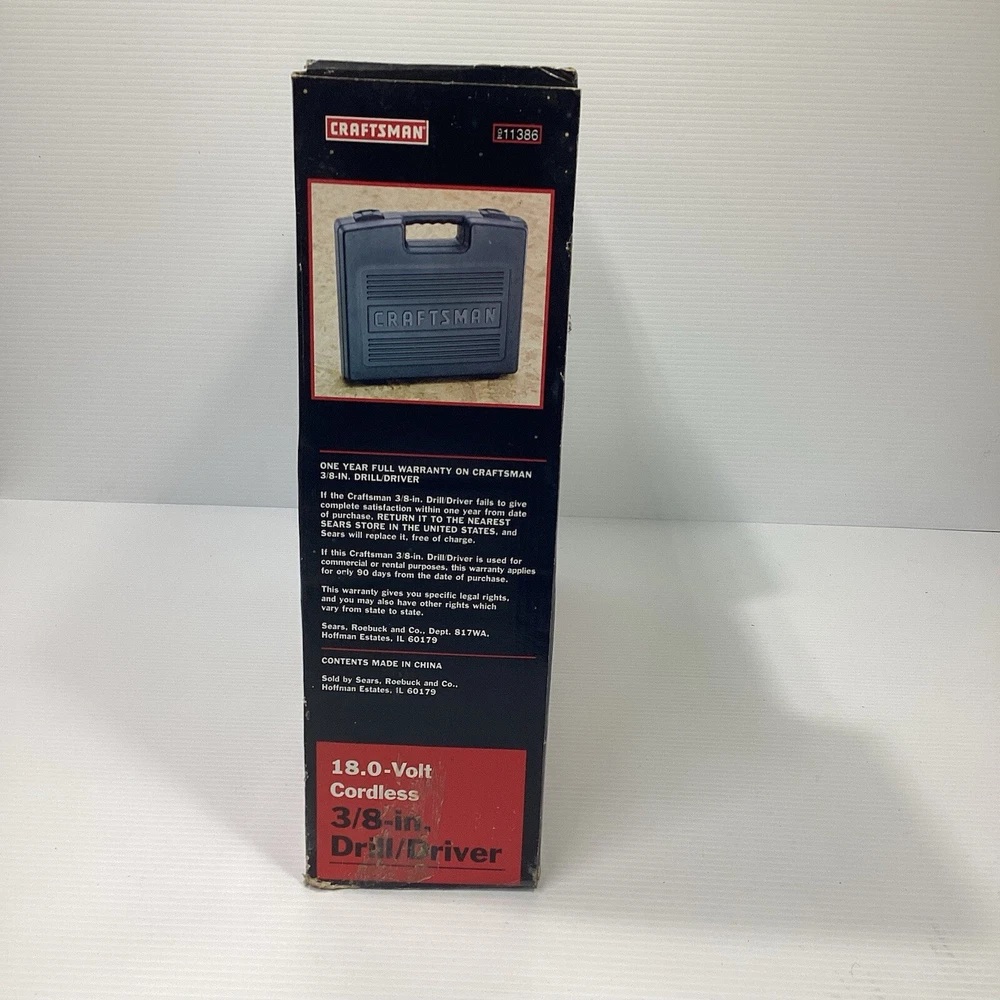 Battery Technology: Nickel-Cadmium (NiCd) Chuck Size: 3/8 in Power Source: Battery Maximum Torque: 330 in-lbs Brand: Craftsman Voltage: 18 V Battery Included: No Type: Keyless Chuck Number of Batteries: 1 Auxiliary Handle: No Chuck Type: Keyless Charging Time: 3 hr Battery Capacity: 1 Ah Number of Items in Set: 1