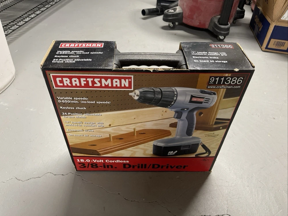 The Craftsman 18.0-Volt Cordless 3/8-in. Drill Driver is a powerful tool designed for various drilling and driving tasks. It features a 3/8-inch keyless chuck for easy bit changes. The drill driver operates on an 18V Nickel-Cadmium battery with a capacity of 1 Ah, offering cordless convenience for projects. It includes one battery and has a 3-hour charging time, ensuring minimal downtime during use. The Craftsman brand is known for quality and reliability in power tools. 24- Position adjustable torque clutch. Electronic brake and on board bit storage.