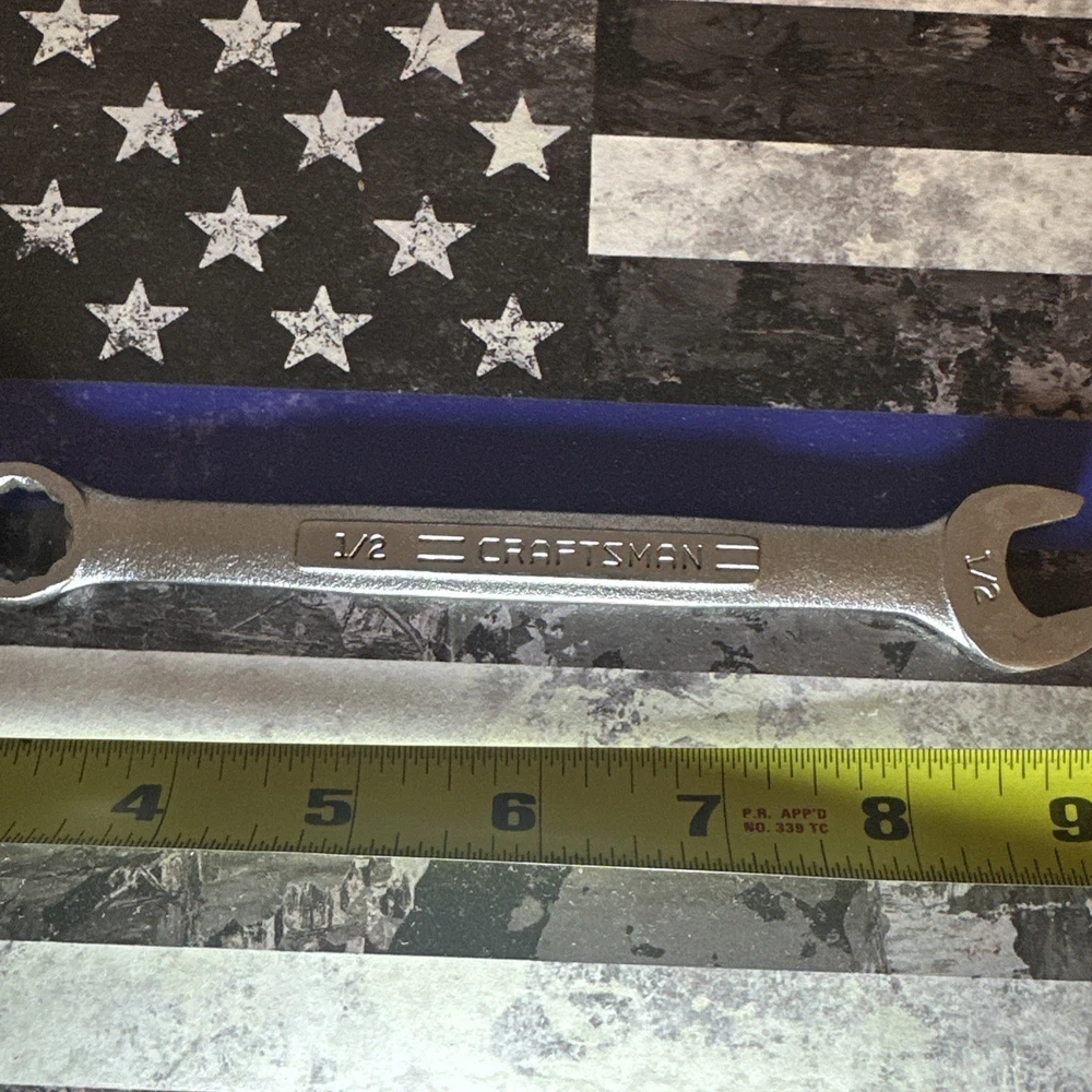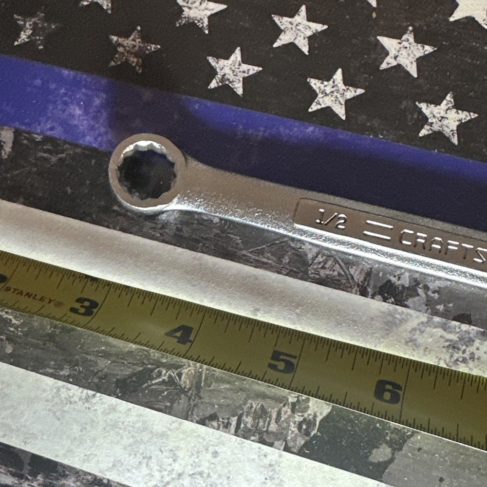 The Craftsman Tools 1/2" 12-Point SAE Combination Wrench 44695 is a high-quality hand tool made in the USA. This single item features a 12-point drive type, making it perfect for automotive applications. With a sleek design and durable construction, this wrench is a reliable tool for any mechanic or DIY enthusiast. Additionally, this product comes with a California Prop 65 Warning, ensuring users are aware of potential health risks associated with the tool.