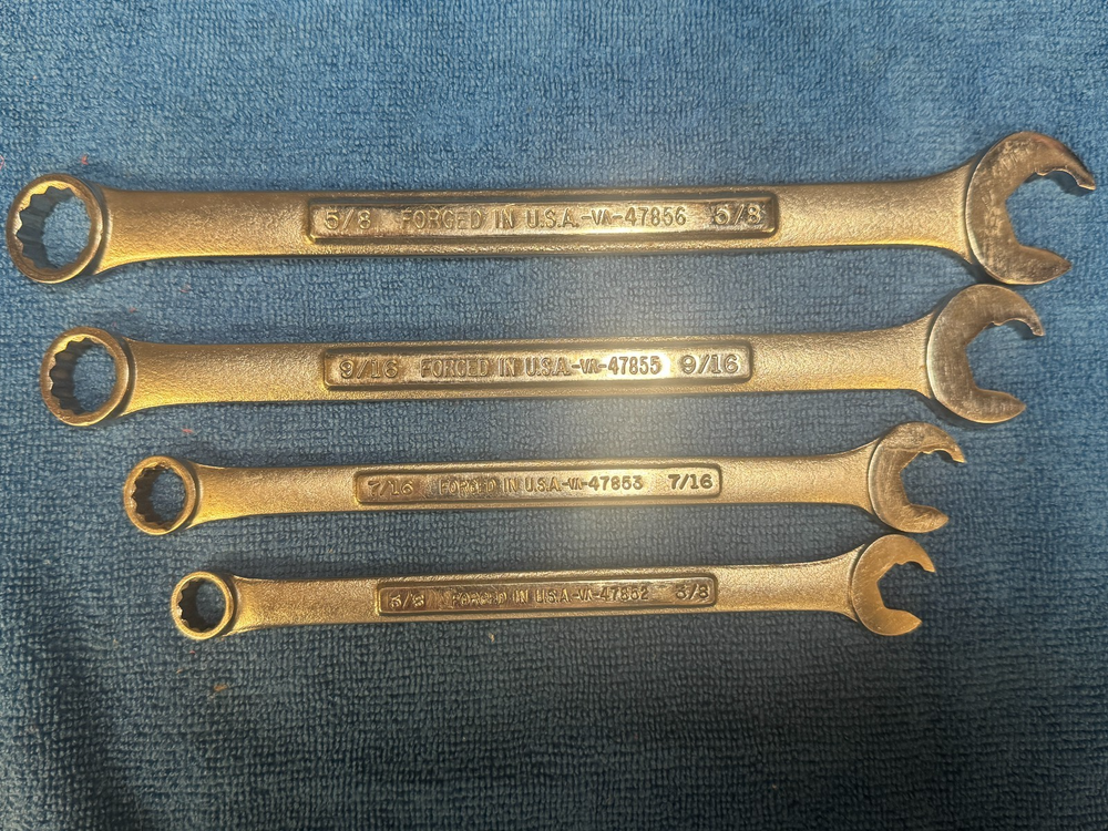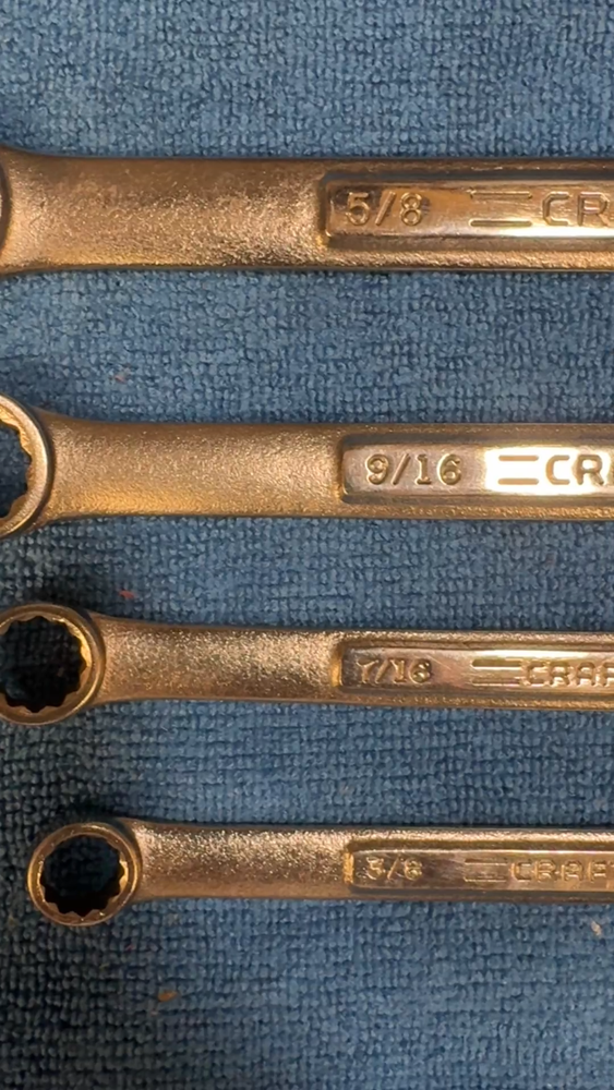 The Craftsman USA Combination Speed Wrench SAE set of 4 is a high-quality hand tool set designed for automotive use. These 12-point wrenches are perfect for working on nuts and bolts with precision and efficiency. Made by Craftsman, a trusted brand in the industry, these lightly used tools are a valuable addition to any mechanic's toolbox. With a focus on durability and reliability, these combination speed wrenches are sure to make your automotive repair and maintenance tasks easier and more effective. Lightly Used. Sizes:5/8, 9/16, 7/16, 3/8. #207