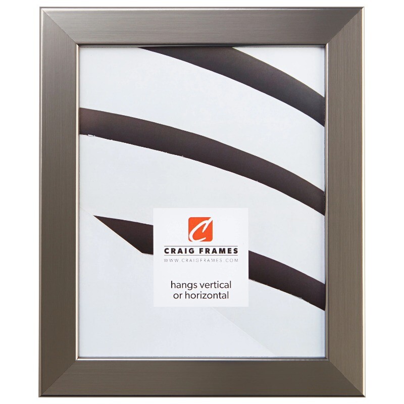 With clean rectilinear lines and square profile, this picture frame is ideal for most modern decor needs. The Bauhaus picture frame series features moulding with a composite wood core and laminate wrap. This sleek 1. 25-inch picture frame comes finished in rustic dark walnut. With some smooth White matting you can elevate your prints to the next level. Sharp and bold, this Bauhaus brown picture frame is a perfect combination of rustic and modern. Craig Frames Wood Composite Wall Mounted Frames, Rustic Gray: Frame material: MDF composite Frame finish: laminate wrap Frame color: rustic dark walnut Components: glass, rigid Black backer with stamped hangers Size selected should equate to the size photo/print/poster being framed