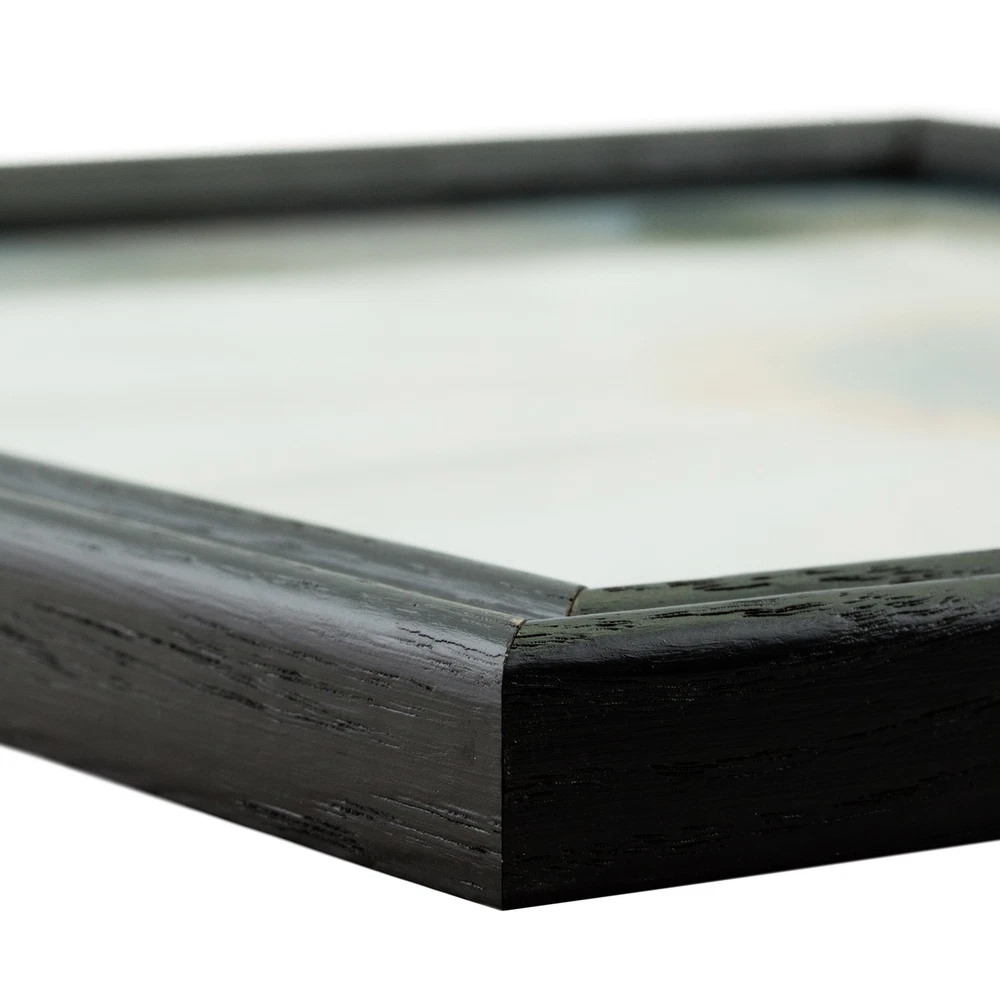 This brand new picture frame is manufactured in the USA at our facility in Ithaca, Michigan using the best materials and tools available. Our picture and poster frames LARGER THAN OR EQUAL TO 12x18 Inch (inside dimensions) include clear STYRENE facing, a rigid cardboard backing and hanging hardware. Some assembly is required to attach the hanging hardware to the frame. Visit our seller info page for assembly instructions. Hanging hardware includes: (2) 1" Nails, (1) 30# capacity Wall Hanger, (1) 4' length of Hanging Wire, (2) D-Rings, (2) 1/2" Screws. Before hanging your frame, please remember to peel off the blue protective film from the styrene facing (or acrylic facing if you upgraded) for maximum clarity. Our picture frames will compliment any space that you hang them in, they make great gifts and they will protect and display your photographs and artwork for years to come. If you have any questions or comments, please do not hesitate to contact us. Feel free to visit our storefront and seller info pages to browse our extensive selection of frames, read customer feedback or review our policies and contact info. At the end of the day we want you to be completely happy with your purchase. Be sure to add us to your list of favorites so you can easily find us the next time you need a quality picture frame. Thank you for shopping with us. We are Craig Frames and we are framing the world.one customer at a time. Traditional style; black semi-gloss stain finish with visible wood grain Frame includes: clear acrylic facing, rigid cardboard backing and wire hanging hardware kit (some assembly required) Frame holds a 22 inch by 28 inch photo/print/poster (viewable area reduced by .25" on each side due to frame lip) **IMPORTANT** FRAME MOULDING IS THREE-QUARTERS OF AN INCH WIDE. THIS IS A THIN PICTURE FRAME.; comprised of solid Ash wood Frame is designed for WALL HANGING only (hanging hardware allows for portrait or landscape orientation)