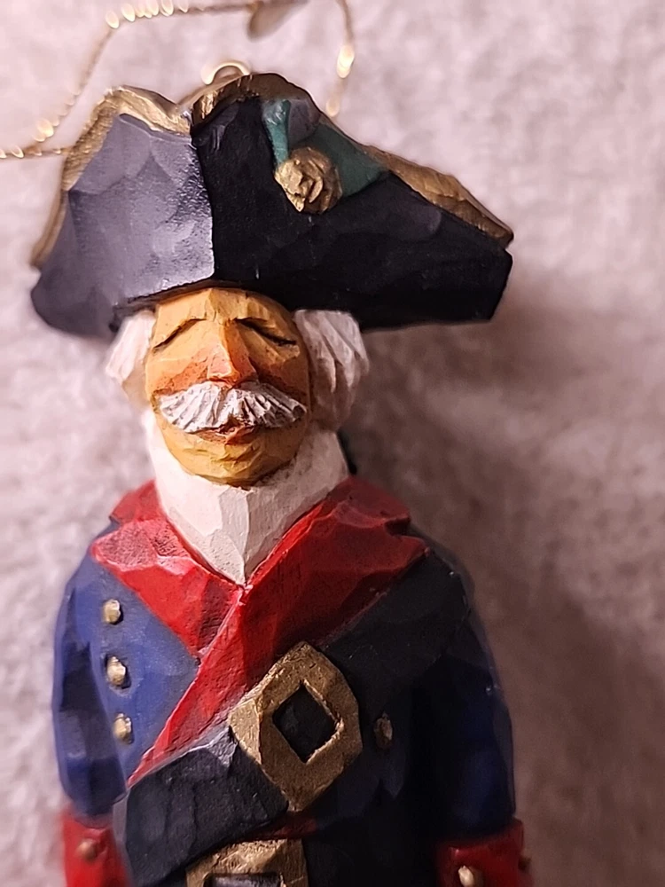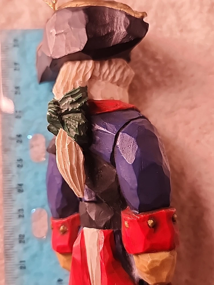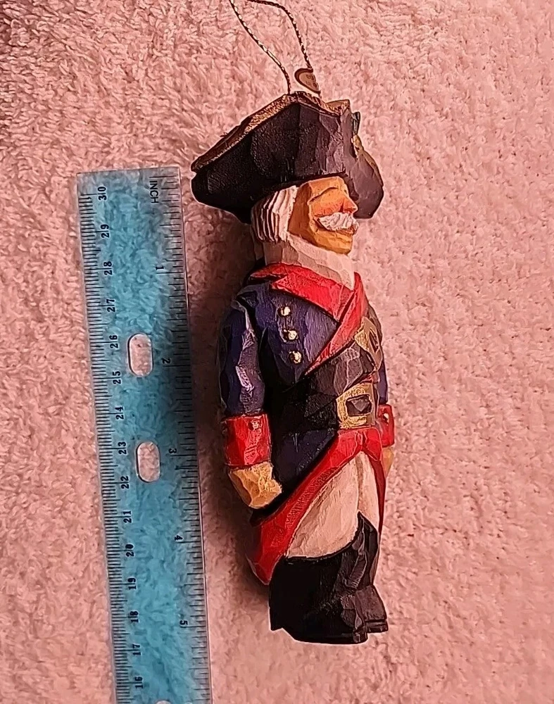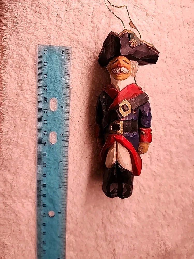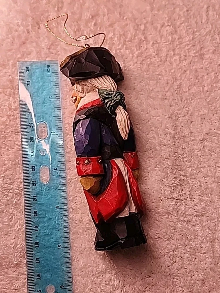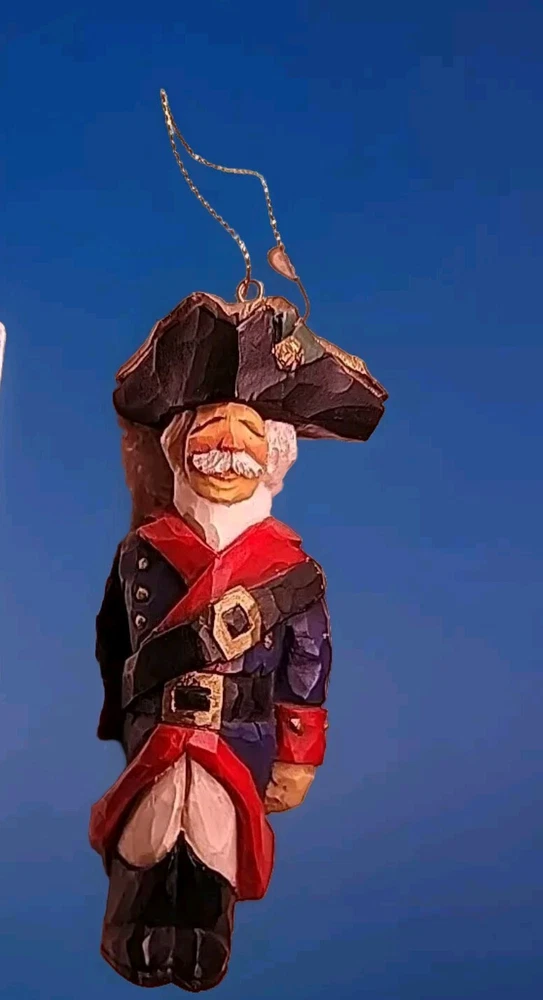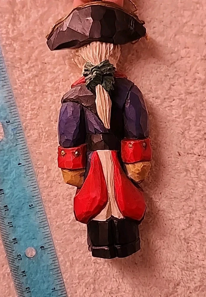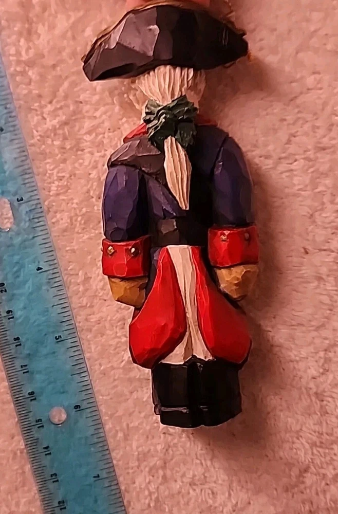 SEE PHOTOS! BEAUTIFUL CARVED ORNAMENT CK INSPIRED This Craig Kirkwood Soldier Ornament is a perfect addition to your Christmas tree or collection. The 8-inch wooden figurine is hand-carved with intricate details and features a multicolor design. The soldier is part of the Craig Kirkwood Laramie Wyoming collection and is a great decorative piece for any occasion. The vintage ornament is produced using wood carving techniques and features a hanging feature for easy display. The soldier is a subject of the Revolutionary War and is perfect for collectors who appreciate historic military memorabilia. Add this unique piece to your collection today!