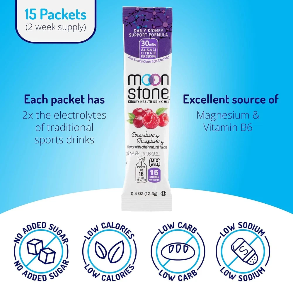 Primary Supplement Type: Alkali Citrate Product Benefits: Kidney Support Size: 15 Servings (Pack of 1) Age Range (Description): Adult gtin13: 313102691633 UPC: 313102691633 Package Information: Packet Item Weight: 0.22 Kilograms Unit Count: 6.9 Ounce Materials Sourced From: USA Flavor Name: Cranberry Raspberry Brand: Moonstone Nutrition Manufacturer: Moonstone Nutrition Item Form: Powder Flavor: Cranberry Raspberry Product Dimensions: 2.87 x 7.44 x 8.9 inches; 7.83 ounces Item dimensions L x W x H: 2.87 x 7.44 x 8.9 inches Type: Does not apply