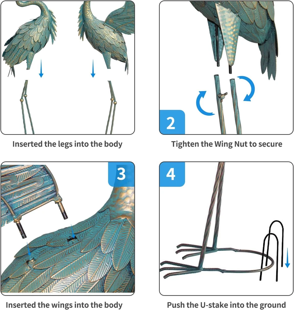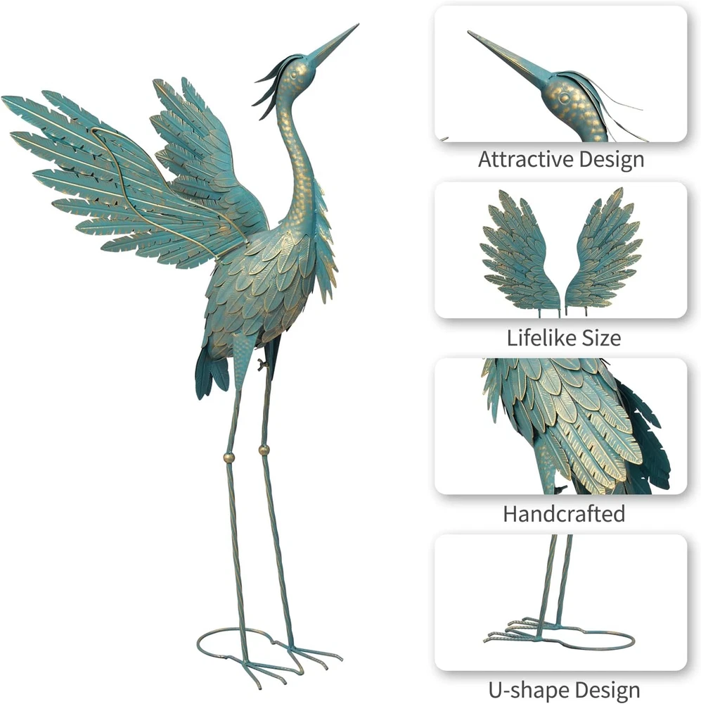 Store New Arrivals Add to Favorite View Feedback Contact Crane Statues for Outdoor, Metal Heron Garden Statues Bird Yard Art, Standing Sculptures for Yard Lawn Pond Garden Decor, 38-42 Inch Set of 2, Cyan Description Style Vintage Number of Items 2 Mounting Type Freestanding Color Cyan Finish Type Painted Material Metal Country of Origin China Item Weight 9.78 pounds Theme Animals Cartoon Character Bird Recommended Uses For Product Outdoor Seasons All Seasons Collection Name All Included Components Ground Stakes Special Feature High-quality and weather-resistant materials, hand-painted finishes, and easy assembly with knock-down legs Product Dimensions 19.9"D x 20.9"W x 42.2"H Occasion Housewarming Heron Decoy: These eye-catching heron statues for garden is a perfect decoration for outdoor & indoor, especially for garden/yard/pond/lawn/patio. The vintage color herons add a rustic touch to your home Dimensions:20.9”W x 19.9”D x 42.2”H / 13.2”W x 8.7”D x 35.8”H. Gorgeous appearance and elegant poses that accentuate the unique appeal of garden decor in an artistic way. Premium Quality: The Heron garden statues are made of high-quality and weather-resistant paints materials. The hand-painted with outdoor safe finishes, make it more sturdy and durable Easy Assemble: The legs of garden statues knock-down for shipping, no other tools required. Place on level surface and insert included Ground Stakes in desired location for added stability Great Gift Ideas: These beautifully designed crane yard art decorations are the perfect choice for housewarmings, holidays, or birthday presents for a hostess Product Description Metal Yard Art The metal crane statue are not only blends effortlessly with any outdoor occasion such as garden, yard , lawn, porch, pathway, but also a great choice to give them this beautiful metal statue as a birthday, housewarming, or holiday gift when expressing some love to your family and friends. The home of garden Heron garden deocr for outside Oritty Crane Garden Statue displays the elegant style design. The crane pair outdoor statues are made of durable metal material and hand-painted with outdoor safe finishes to ensure lasting use, gorgeous appearance and elegant poses that accentuate the unique appeal of garden decor in an artistic way. The video showcases the product in use. The video guides you through product setup. The video compares multiple products. The video shows the product being unpacked. The home of garden Crane statues for outdoor Orrity Crane statues with safe finishes are suitable for inside and outside. They will be eye-catching decorations that add a touch of elegance to your pond, yard, lawn, and garden. Made of premium and weather-resistant paint materials, these metal heron statues are sturdy enough for long-term use. The video showcases the product in use. The video guides you through product setup. The video compares multiple products. The video shows the product being unpacked. Garden Decor Heron Statue In order to ensure the authenticity of our product. The Oritty’s statues are made according to the height of the real animal, which is about the same size as the real crane/heron. The Heron garden statues are made of high-quality and weather-resistant paints materials. Garden Statues & Sculptures The metal crane statue are not only blends effortlessly with any outdoor occasion such as garden, yard, pool but also a great choice to give them this beautiful metal statue as a birthday, housewarming, or holiday gift when expressing some love to your family and friends. Easy to Install: Oritty Specification: • Garden & Sculptures: Crane Statue • Material: Thick metal • Color: Cyan • Product size (spread the wings): 20.9” W x 19.9” D x 42.2” H • Product size (small heron):13.2” W x 8.7” D x 35.8” H Is the crane statue easy to install? Sure, you don't need any tools to install it. How do you make it stand firmly in the wind? There are 4 U-STAKES in the package. Place on level surface and insert included 4 Ground Stakes in desired location for added stability. Can the crane statue be placed by the pool? Of course, this heron statue is a perfect decoration for outdoor & indoor, especially for garden yard pond lawn patio. Oritty Garden Statues Add to Cart Add to Cart Add to Cart Add to Cart Add to Cart Add to Cart Customer Reviews 4.7 out of 5 stars 445 4.7 out of 5 stars 445 4.6 out of 5 stars 440 4.6 out of 5 stars 440 4.7 out of 5 stars 445 4.2 out of 5 stars 224 Price $119.99 $ 119 . 99 $129.99 $ 129 . 99 $88.99 $ 88 . 99 $89.99 $ 89 . 99 $89.99 $ 89 . 99 $69.99 $ 69 . 99 Material: Metal Metal Metal Metal Metal Resin Piece: 2 2 2 2 2 1 Overall Size 1: 42.2”H x 19.9”W x 20.9”L 42.2”H x 19.9”W x 20.9”L 37.4”H x 7.7”W x 13.8”L 37.4”H x 7.7”W x 13.8”L 38.4”H x 7.7”W x 11.4”L 18.9”H x 5.6”W x 7.9”L Overall Size 2: 35.8”H x 8.7”W x 13.2”L 35.8”H x 8.7”W x 13.2”L 33.3”H x 16.1”W x 14.8”L 33.3”H x 16.1”W x 14.8”L 34.7”H x 7.2”W x 11.4”L - Waterproof: ✔ ✔ ✔ ✔ ✔ ✔ ABOUT US We offer the best prices around on high quality products. Our E-store includes media such as books, movies, music and games while offering electronics, toys, sporting apparel, clothing, tools, general home, garden items and more. SHIPPING We are always working hard to ensure your package arrives as soon as possible. Please understand that some factors like weather, high postal traffic, and the performance of shipping companies are outside of our control. We offer free shipping to the lower 48 states and ship within 2 business days of payment, usually sooner. We do not accept P.O. Boxes. Please provide a physical address. For shipping outside of the continental USA, we only use eBay's Global Shipping Program.The item is shipped to KY and then sent to the rest of the world. International customers are responsible for all duties and taxes. Continue to check out in order to calculate costs