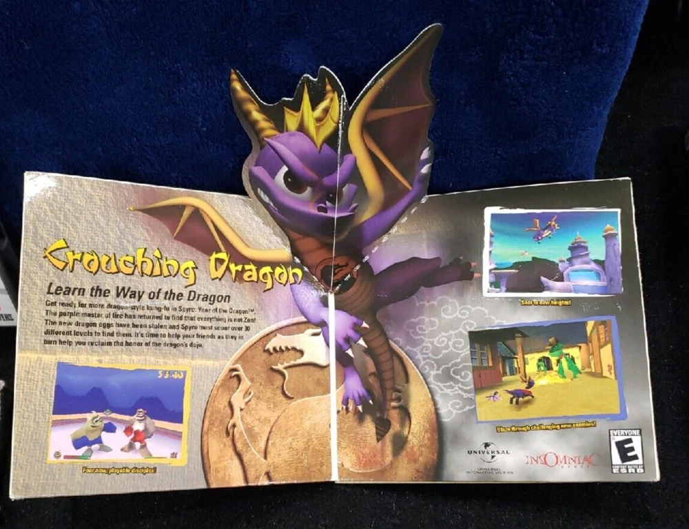 Crash Bash Ps1 Spyro Year Of The Dragon Ps1 Pop-Up Folding Card. Pre-owned still in good condition. The edges of the booklet do show some wear. The graphics on the inside are still vibrant. Please note color may differ slightly from the color shown in the photo due to lighting. Please examine and zoom in carefully as flaws may not be visible from afar. We do our best to identify and disclose all flaws through pictures and/or descriptions we are only human. What is shown in photos is what is included. NOTE: Many of our items are from estate/auction sales and may have been exposed to pets, tobacco products and other unknown contaminants. Shipping Policy We are happy to combine shipping on multiple orders! (Either by combining orders on one invoice or by partial refund). We will ship all items within 1 business day. All items ship from Indiana and take 2-8 days depending on shipping service. On rare occasions, USPS or FedEx may delay a package. Please understand this is out of our control. If you would like an express delivery option, please message us before purchasing, we can update the listing to reflect an express option. (Additional Shipping charges will apply) Feedback If you are satisfied with your purchase, please leave us positive feedback. If there is an issue with your order, please understand we are human and we do make mistakes. Please send us a message and give us a chance to resolve it before returning or opening a dispute with eBay. Disclaimer We are not sponsored by or affiliated with the brands associated with the products being sold. Furthermore, there is no guarantee or assumption that we can provide support or offer any warranty on this product after purchase. Thank you for visiting our listing!
