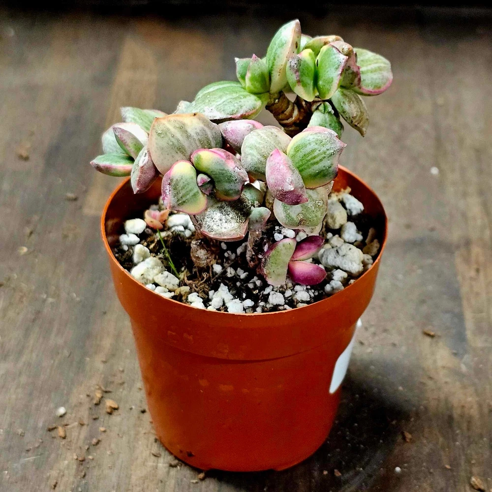 Crassula Obliqua ‘Tricolor' in a 2.5" Pot - AS-IS - CLEARANCE SALE! 2299 Crassula obliqua ‘Tricolor’ is a captivating succulent known for its glossy green leaves adorned with creamy white and pink edges, creating a vibrant, multicolored display. Its compact, bushy growth habit makes it an excellent choice for container gardening or as a striking houseplant. Showcases green leaves with creamy white variegation and pink margins, creating a visually striking appearance. This succulent thrives in bright, indirect light but can adapt to low-light conditions. Water only when the soil is completely dry and reduce watering in winter when growth slows. Please Note: Our selection offers a wide range of shapes, sizes, colors, and textures to match your personal style and preferences. But don't delay - order yours today before they're all gone! The clearance plants remain under our care until sold and will continue to grow, increasing in value. Consequently, their prices may also rise over time. Rest assured, the pictures provided are of the actual plants. Returns: If you need to return an item, we kindly ask that you reach out to us first. Were committed to resolving any issues you might face. In the event that your purchase is defective or damaged, please notify us immediately. For all other returns, items must be in unused condition, with original packaging intact and in a resalable state. These returns must be made within 30 days of receipt. The purchase price will be refunded using the same method as the original payment. Shop with confidence and thank you for choosing us for your shopping needs! We appreciate your business.