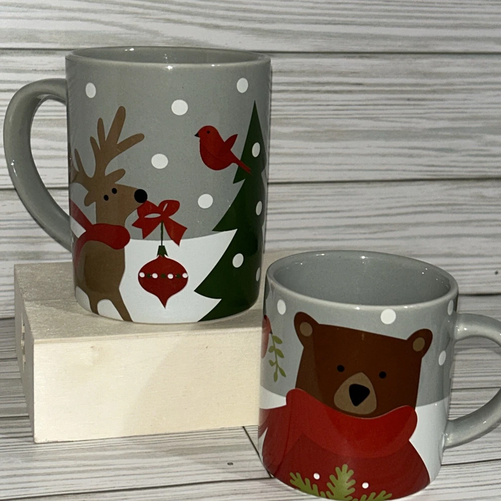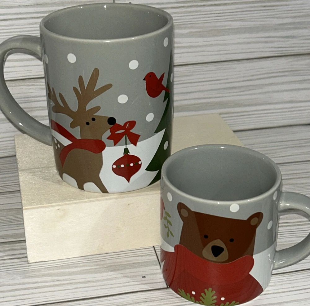 Crate & Barrel Christmas Coffee Mugs Reindeer & Fox Winter Bear By Joan Anderson 1 Adult 1 Child Bigger Cup is 4” Tall 3.5” Wide Smaller Cup is 3” Tall 2.75” Wide Great Condition No Chips Or Cracks See All Pics