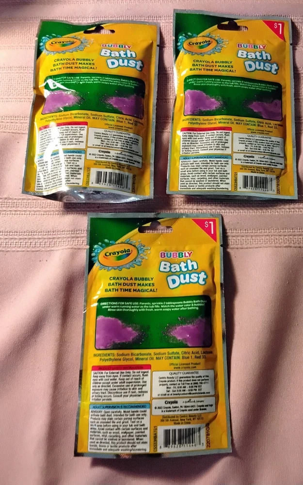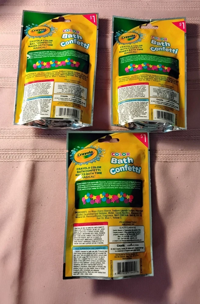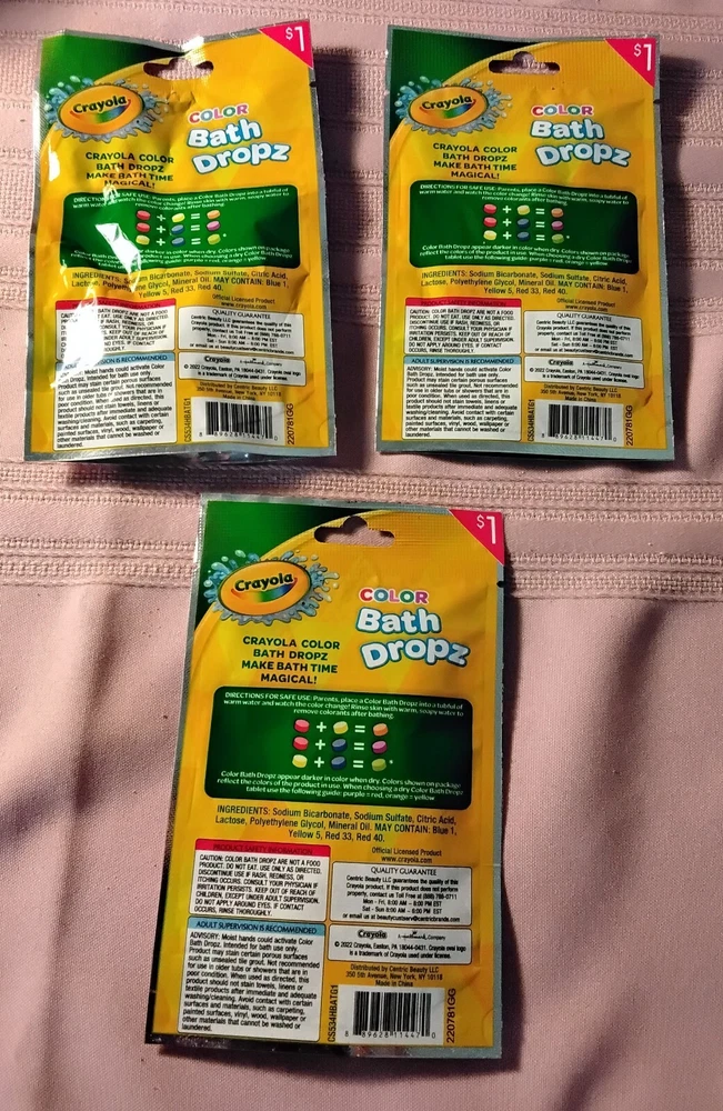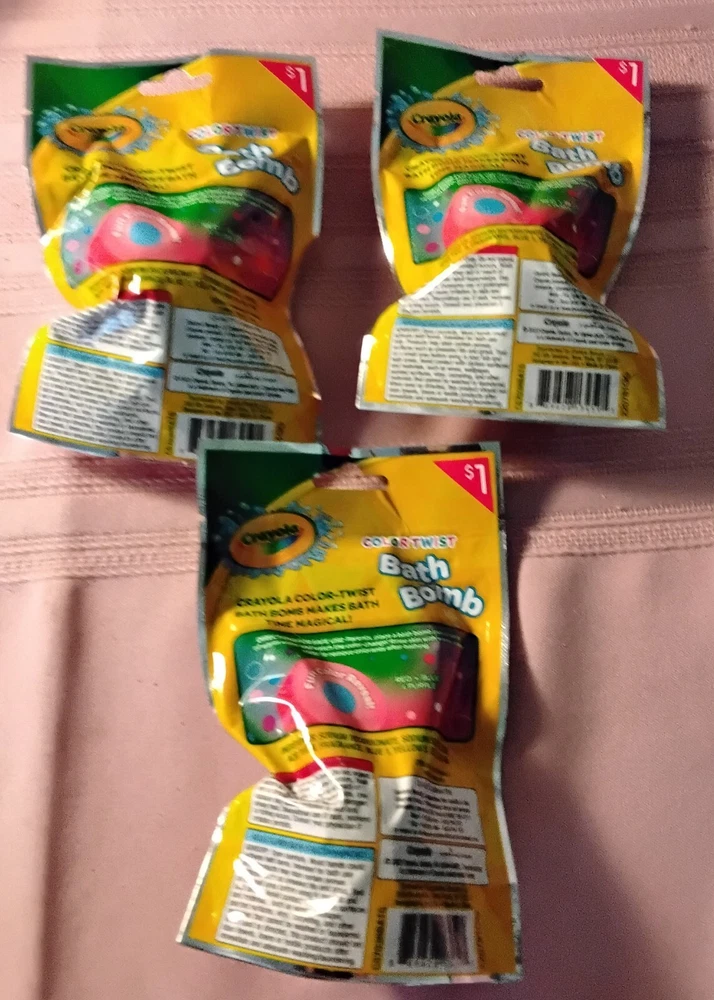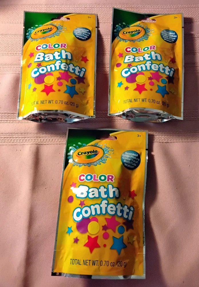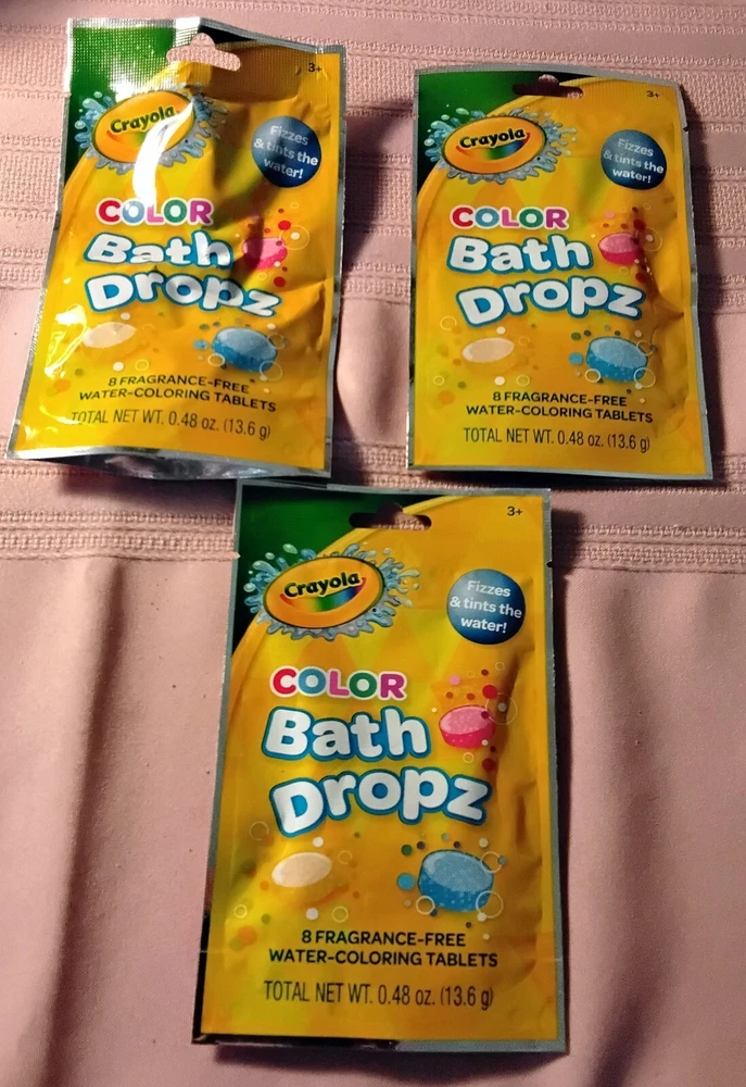 Crayola Bath Time Set 0f 12- 3 each 3 Bath Bombs 3 Bath Dust 3 Bath Drops 3 Bath Confetti Come in different colors and scents they are prepackaged, so color and scent will be random
