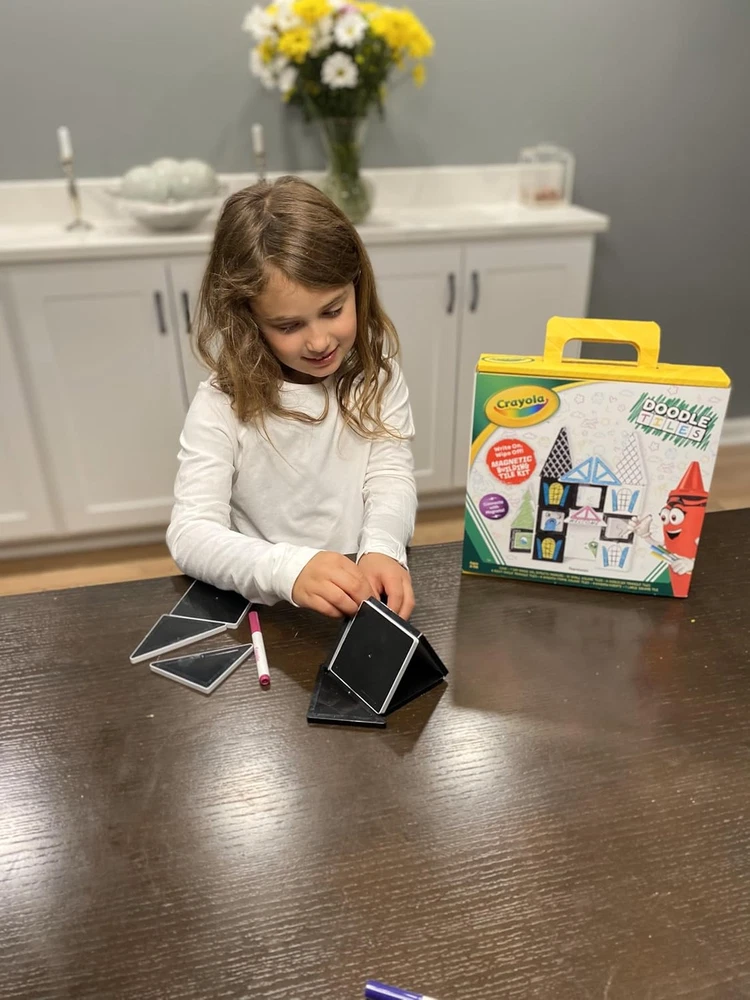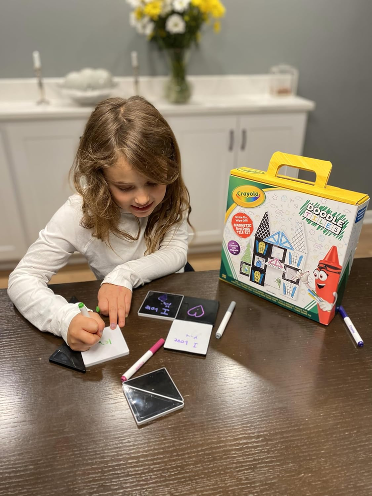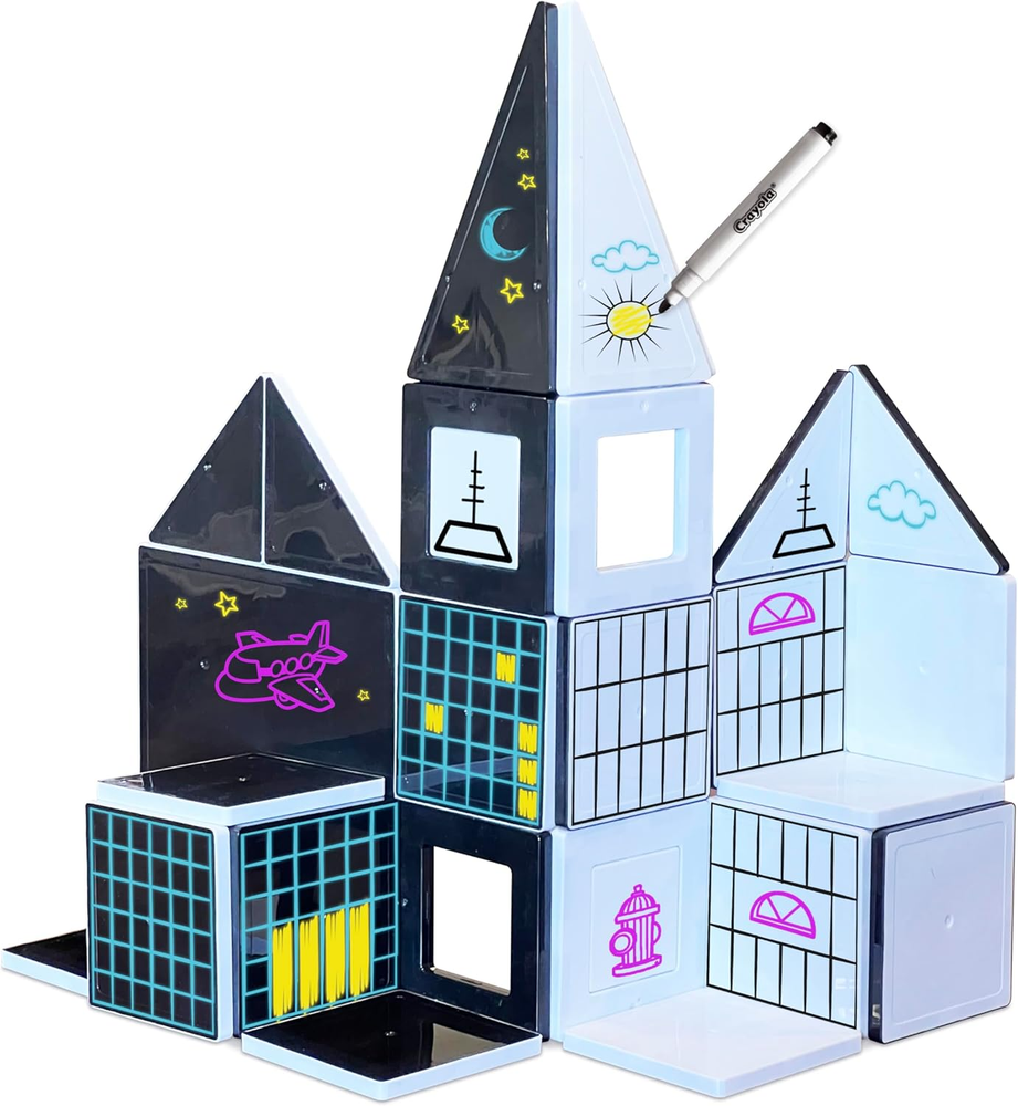 These magnetic tiles are a fantastic creative outlet for kids! The black and white design lets little artists personalize them with doodles while building endless structures. The strong magnets make construction easy, and the 35-piece set keeps play engaging. Perfect for STEM learning and imaginative play—my child loves designing and rebuilding new creations every day. Highly recommend for sparking creativity and fun!