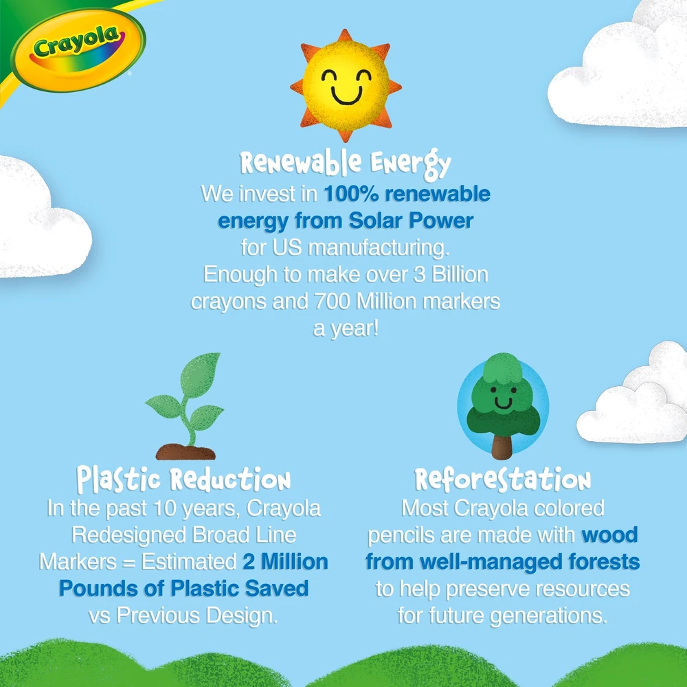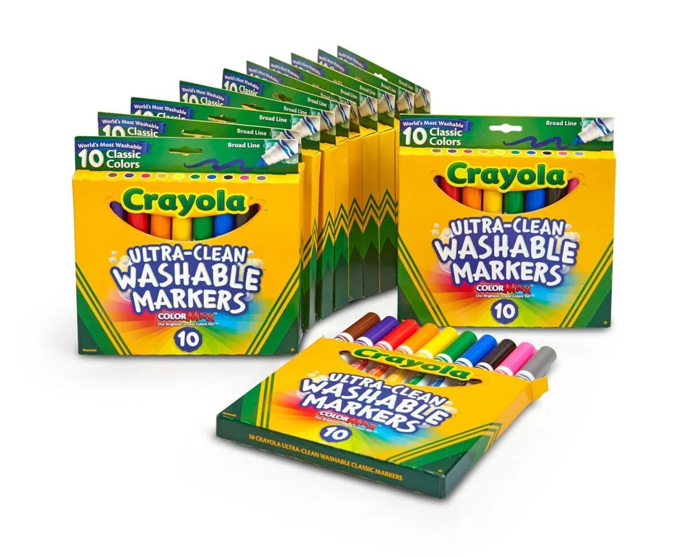 Embrace the vibrant world of colors with the Crayola Bulk Marker Set, perfect for a school year filled with creative possibilities! This set features 12 individually boxed Ultra Clean Washable Marker sets, each boasting 10 assorted colors for students to bring their imagination to life in the classroom. Teachers will appreciate these markers as they are easily washable from skin, painted walls, and most clothing. The color inks simply rinse or wipe off most children’s skin with no soap or scrubbing required, making clean-up a breeze. Not just limited to the classroom, these colored markers are also fantastic for large group coloring activities outside of school. The marker colors include a beautiful spectrum of Brown, Violet, Red, Orange, Yellow, Green, Blue, Black, Pink, and Gray. Each marker comes Color Max enhanced, offering brighter and more beautiful marker colors that make every artwork stand out. These markers are not just tools, but a gift of creativity for kids, making them a great choice for birthdays or holiday presents. Designed with safety in mind, our Crayola Markers are safe and nontoxic, making them ideal for young artists ages 4 and up. So, gear up for a school year filled with color and creativity with our bulk marker set! BULK CRAYOLA MARKERS: This bulk marker set features 12 separately boxed sets of 10 Ultra-Clean Washable Markers. CLASSROOM ART SUPPLIES: These classroom supplies for kids are perfect for teachers looking to stock up preschool, kindergarten, and daycare classrooms for back-to-school. WASHABLE MARKERS: Crayola Ultra-Clean Washable Markers wash easily from skin, painted walls, and most clothing. COLOR MAX ENHANCED: Each marker comes Color Max enhanced with brighter and more beautiful marker colors. MARKER COLORS: Marker colors include Brown, Violet, Red, Orange, Yellow, Green, Blue, Black, Pink, and Gray. GIFT FOR KIDS: Crayola Markers make a great birthday or holiday gift for kids. SAFE & NONTOXIC: Crayola Markers are safe and nontoxic, ideal for ages 4 and up.