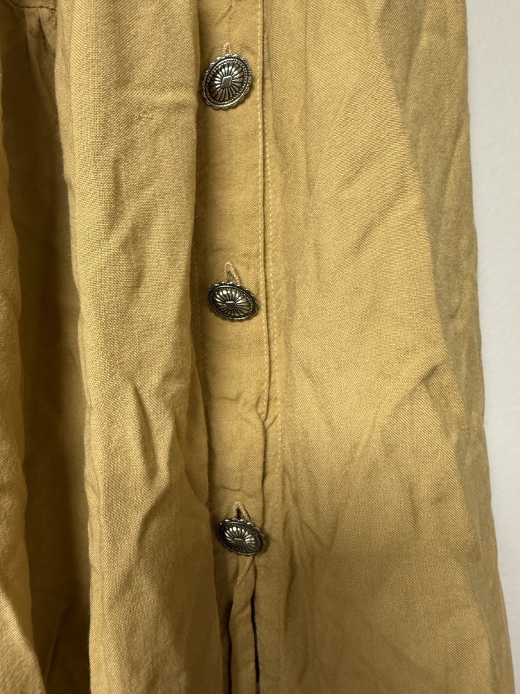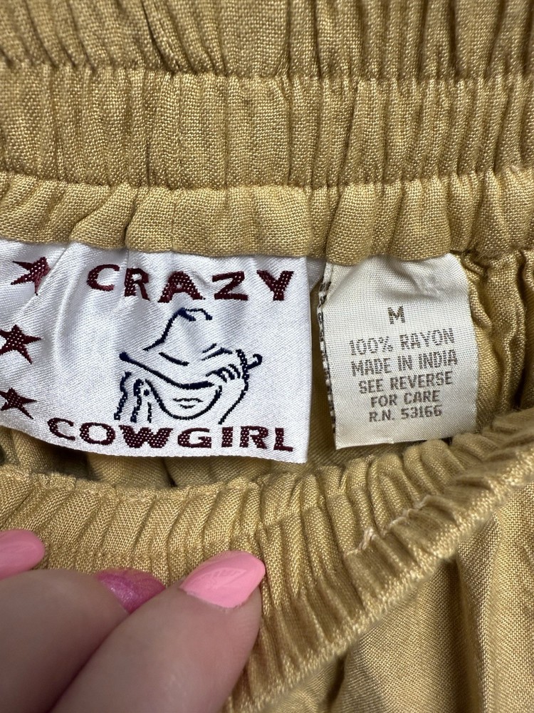 The Crazy Cowgirl Women’s Mustard Colored Maxi Skirt in Size M is a stylish and unique piece of women's clothing. This skirt features a vibrant yellow color and a long maxi length, perfect for those looking to make a statement. Designed with a cowgirl character in mind, this skirt is both fashionable and fun. Made by the brand Crazy Cowgirl, this skirt is sure to be a standout addition to any wardrobe.