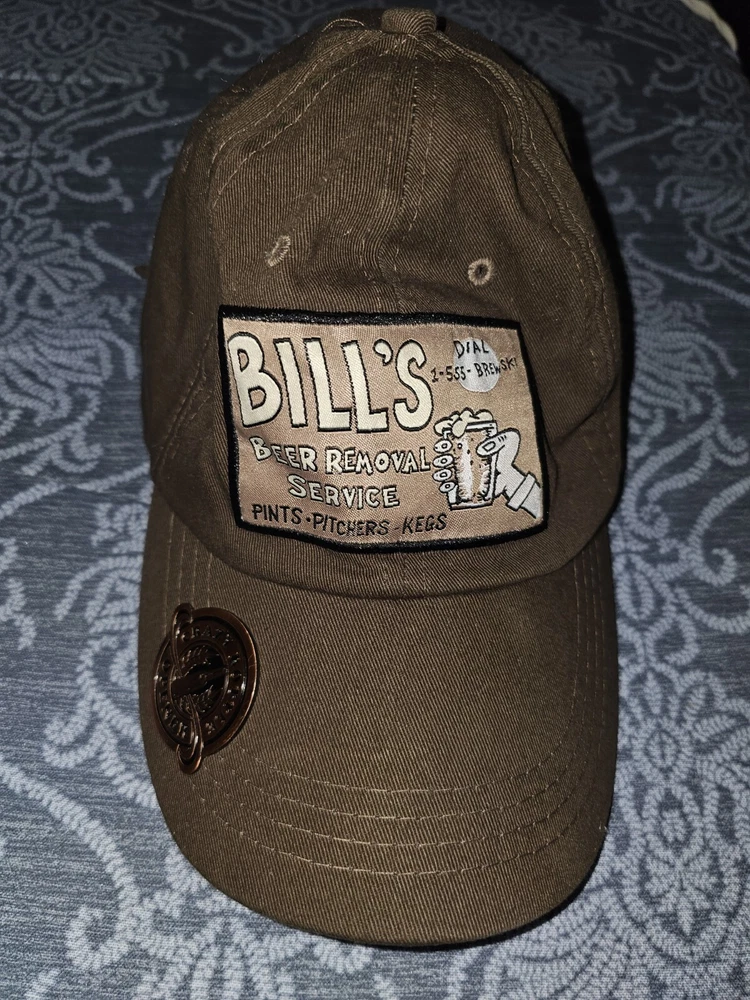 Get ready to add some vintage flair to your casual outfit with this Crazy Shirts baseball cap. The brown cotton cap features the iconic Bill's Beer Removal Service logo and an adjustable strap for a comfortable fit. Perfect for opening your favorite beverage, this cap is a must-have for any casual occasion. The solid pattern and vintage style make it a unique addition to your collection. Made in China, this cap is a great find for men who appreciate a touch of nostalgia. Condition is new without the tags. Please see pictures. Shipped with USPS Ground Advantage.