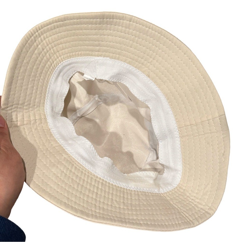Cream cotton bucket hat with pink embroidered "Angels" graphic featuring halo and wings detail. Super soft girl / coquette / Y2K vibe. Easy neutral cream tone that pairs perfectly with spring and summer outfits. Details: • Cream / light beige color • Pink embroidered Angels script • Halo + wing detail • 100% cotton • Lightweight and breathable • One size (no size tag visible) • Made in China