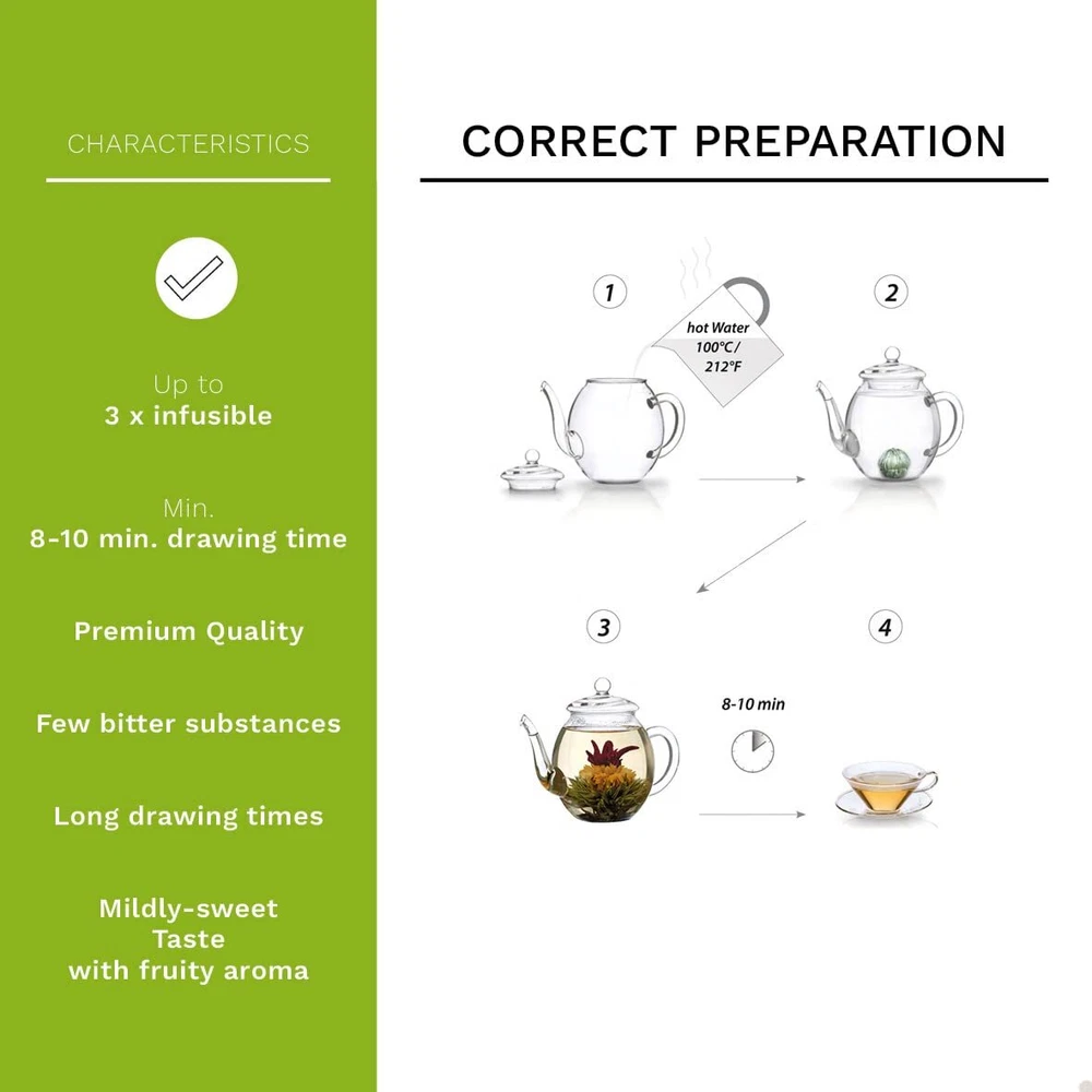 Creano Flowering Tea Abloom Tea - Blooming Tea Gift Set in Stylish Wooden Tea Box, 12pcs OFFER: Tea flowers gift set with 12 different tea roses - green tea fruity flavored. Our offer for real tea lovers comes in an attractive & noble wooden box as gift packaging. FEATURES: Each Blooming Tea blossom can be poured up to 3x - and thus results in approx. 50oz (1.5l) of tea for true connoisseurs in addition, the tea balls are wonderfully fruity flavored. The mild green tea is sweetly complemented by marigolds, roses, jasmine blossoms, hibiscus and elderflower. Due to its high quality and low content of bitter substances, the tea tolerates long brewing times and guarantees an extended visual experience. QUALITY: Creano Blooming tea are a branded product of the very best quality. We attach great importance to the quality of the tea, blossoms as well as the function and appearance. As a member of the German Tea Association, we stand for the greatest possible product safety and are subject to the "Code of Conduct". GIFT: An ideal gift for women for example for a birthday, Mother's Day, Valentine's Day, Christmas or Easter. Unlike a bouquet of flowers, a tea flower usually creates great amazement coupled with a childlike joy as soon as the tea ball opens in the pot. OUR SATISFACTION GUARANTEE: Do not hesitate to contact us. In case of any problems, our friendly and competent customer service is at your disposal and will find a 100% satisfactory solution with you! Shipping We offer FREE shipping on all orders! We ship within Three business days of payment, usually sooner. We use a selection of shipping services such as UPS, FedEx, USPS etc. We only ship to the lower 48 states, no APO/FPO addresses or PO Boxes allowed. Local pickups and combined shipping options are not provided at this time. Return You can return a product for up to 30 days from the date you purchased it ONLY if it's in the original condition. The product cannot be used or open. Any product you return must be in the exact same condition you received it and in the original packaging. Please keep the receipt. Feedback Customer satisfaction is very important to us. If you have any problem with your order, please contact us and we will do our best to make you satisfied. Contact Us If you have any queries, please contact us via ebay. We usually respond within 24 hours on weekdays. Please visit our eBay store to check out other items for sale! Thank you for shopping at our store.