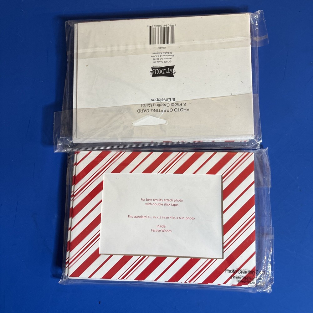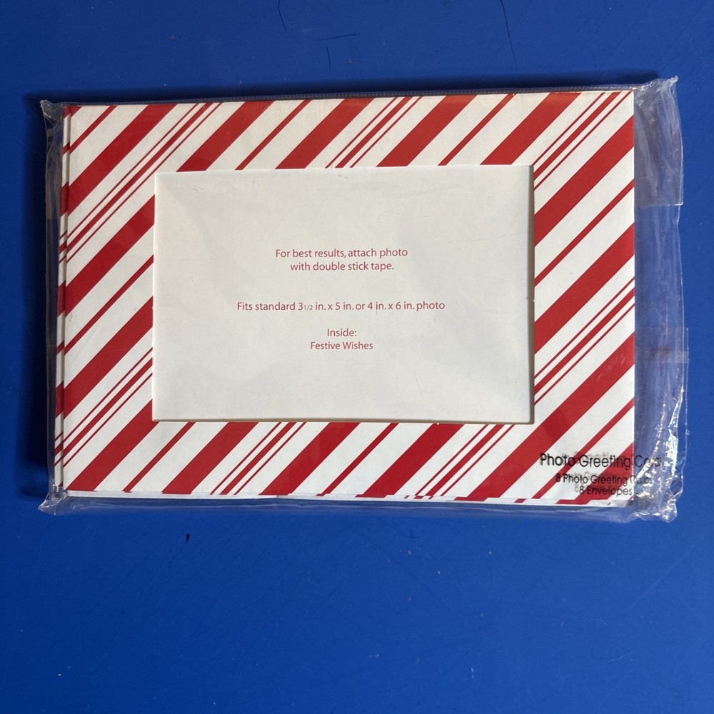 Holiday picture greeting cards 8 cards and 8 envelopes Fits standard: 3 1/2” X 5 in OR 4” X 6” photos Inside greeting: Festive Wishes