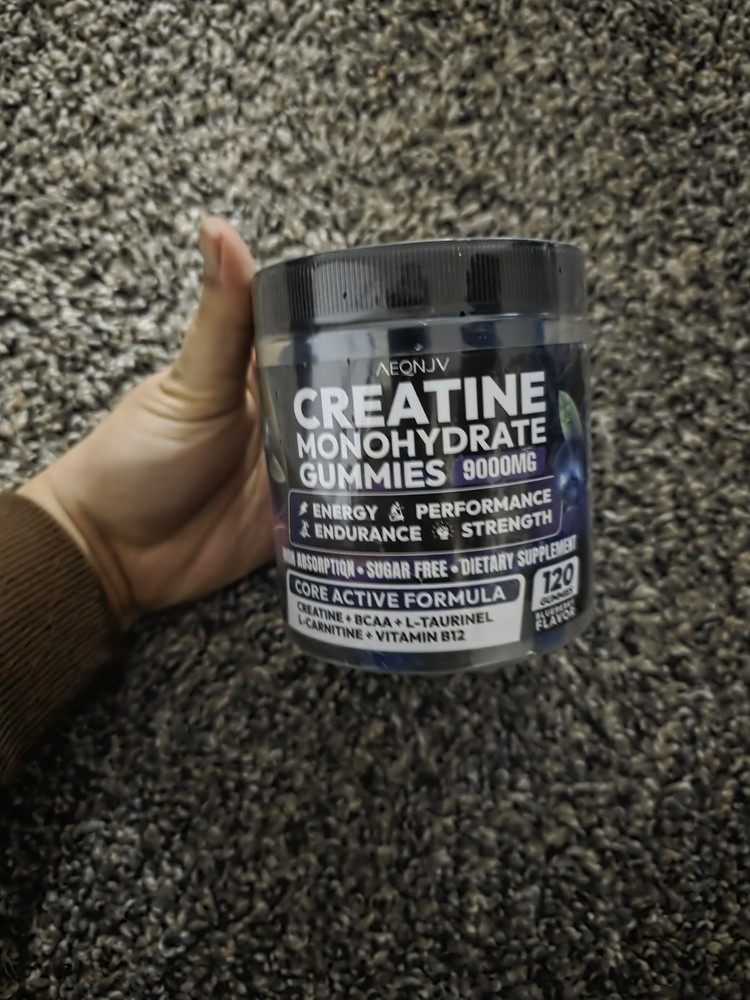 Creatine Monohydrate Gummies by Aeqnjv are designed for gym training and bodybuilding. These blueberry-flavored gummies contain 5mg of Creatine Monohydrate, a vegan-friendly supplement known for its benefits in improving strength and muscle growth. With a supply for 1 month or longer, these gluten-free gummies are easy to take before workouts, making them a convenient and effective addition to your fitness routine.