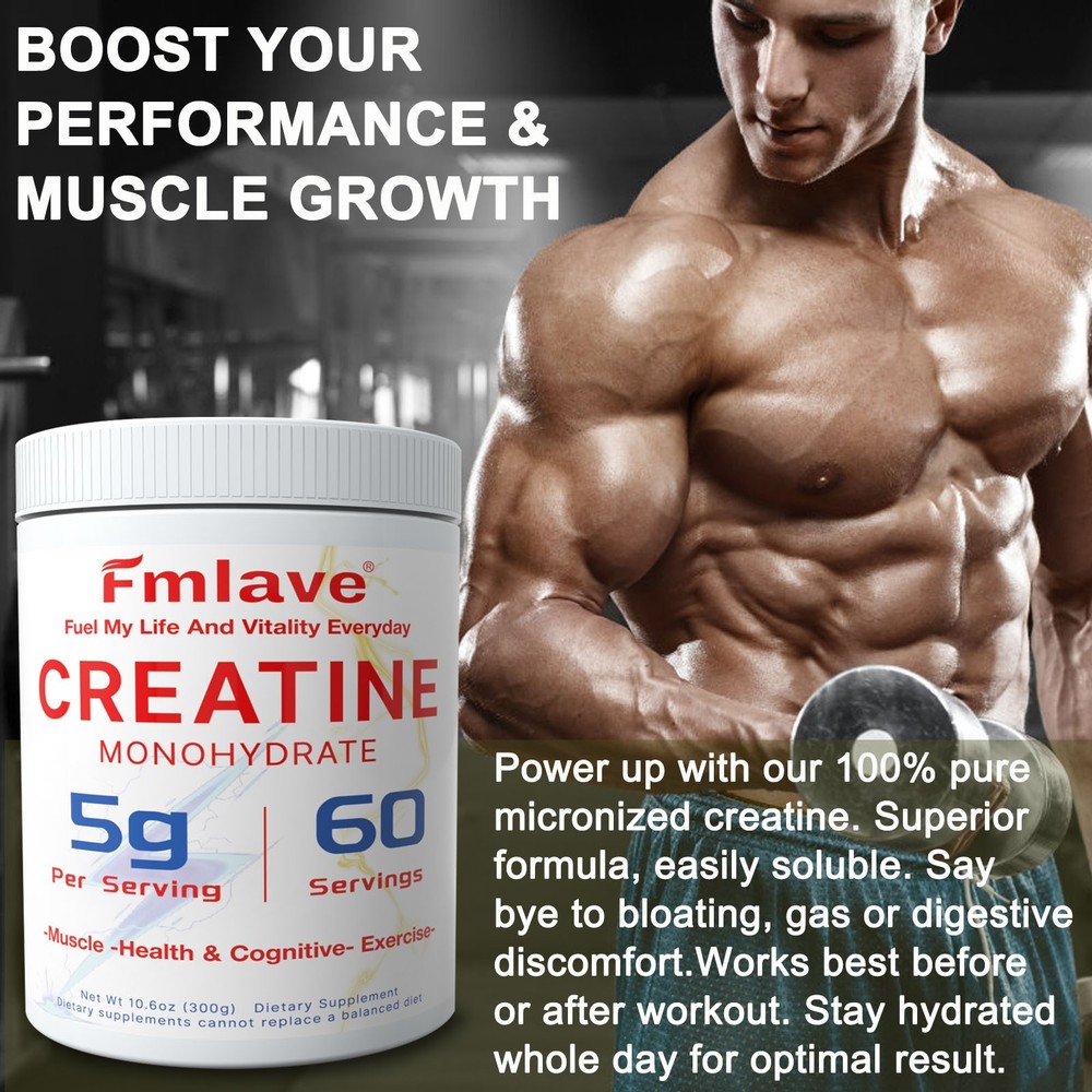 Features: Pure Creatine Monohydrate: Contains 100% pure creatine monohydrate with no fillers or additives, delivering maximum potency to help improve muscle strength, power, and overall workout performance. Micronized for Smooth Mixing: Designed with micronized particles for easy dissolution, ensuring smooth mixing in water or any beverage, without clumping. Ideal for pre- or post-workout shakes. Enhanced Absorption for Quicker Effects: The micronized formula promotes faster absorption into the body, ensuring quicker delivery to muscles, boosting performance, recovery, and overall results. Boosts Strength and Endurance: Helps increase muscle strength, endurance, and supports faster recovery, making it an essential supplement for high-intensity workouts and muscle growth. Trusted Third-Party Validation: Our Creatine Monohydrate Powder undergoes rigorous 3rd party lab testing ensuring a top-tier product that meets the needs of athletes and fitness enthusiasts who are seeking reliable performance. Main Benefits: Muscle Growth Improve Athletic Ability Support Post-workout Recovery Boost Strength Energy Support Who Is Fmlave Creatine Monohydrate Powder For? Creatine Monohydrate is a go-to supplement for people who want to support strength, power, and training performance —especially during short, intense workouts. Great for: Weight lifters & strength trainers (gym, bodybuilding, resistance training) Athletes & active adults doing high-intensity sports (HIIT, CrossFit-style training, sprinting, basketball, football) Fitness beginners who want a simple, easy-to-use staple to support a consistent routine Anyone working toward muscle-building goals alongside training and a balanced diet Common goals: Support strength & power output Help improve workout performance during short bursts of effort Support recovery and training consistency Note: These statements have not been evaluated by the Food and Drug Administration.This product is not intended to diagnose,treat,cure, or prevent any disease. Suggested Use: As a dietary supplement, take as directed by your healthcare professional or as follows: Days 1-5: Take 1 scoop (5g) with 6-10oz ofwater, 4 times a day. From day 6 onward: Take 1 scoop (5g) with 6-10 oz of water,once a day. Delivery details Terms of sales About sevicrs Contact us Payment Delivery details We are US sellers, and ship from US, usually the shipping time is about 2-5 working days. Terms of sales Fmlave — Science-backed daily wellness. At Fmlave you'll find some of the highest quality, healthy products, at the best prices on ebay! About sevicrs Customer satisfaction is our main priority and we appreciate every single customer who chooses to shop in Fmlavehealth. We ensure that every order is processed with efficiency, accuracy, and attention to details. Contact us We usualkly reply in 24 hours on working days . You are very welcomed to write to us at any time. Payment Payments are managed by eBay and immediate payment is required when you use Buy It Now.