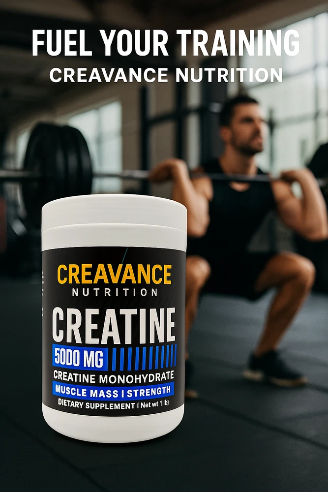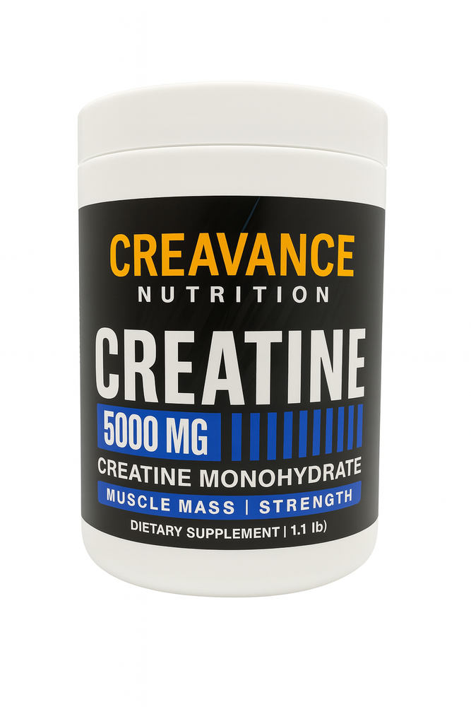 are your training seriously with Creavance Creatine Monohydrate , developed for athletes and fitness enthusiasts who demand consistency, purity, and performance . Our creatine is 100% pure and micronized , ensuring easy mixing and optimal absorption. Designed to support high-intensity workouts, strength training, and daily performance routines, it fits perfectly into any serious supplementation plan. Whether you train for strength, endurance, or overall performance, Creavance delivers a clean, reliable product you can trust — with fast shipping across the United States. KEY FEATURES ✔ 100% Pure Creatine Monohydrate ✔ Micronized powder for better mixability ✔ Unflavored – easy to stack with any supplement ✔ Ideal for strength and performance training ✔ Sealed, high-quality packaging ✔ Fast shipping within the USA DIRECTIONS FOR USE Mix 1 scoop (5g) with water or your favorite beverage. Use daily or as recommended by a health professional. 🔹 PRODUCT DETAILS Net Weight: 500g Form: Powder Flavor: Unflavored Condition: Brand New Ships From: United States WHY CHOOSE CREAVANCE Creavance Nutrition focuses on quality, transparency, and reliability . Every product is crafted to meet high standards, giving you confidence in what you put into your body. Train smarter. Stay consistent. Choose Creavance.